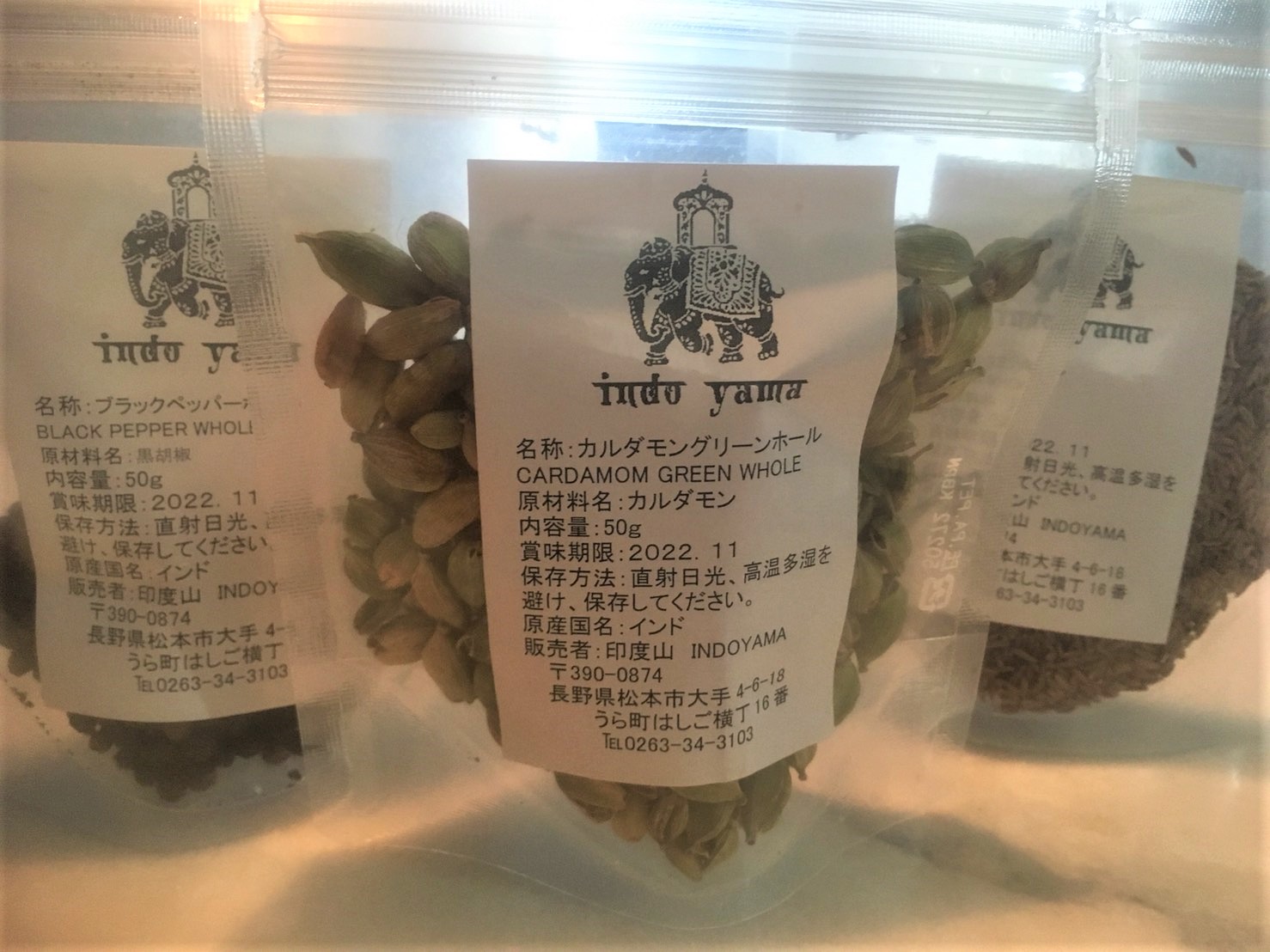 3種類のスパイスを購入しました。クミン・カルダモン・ブラックペッパーです。