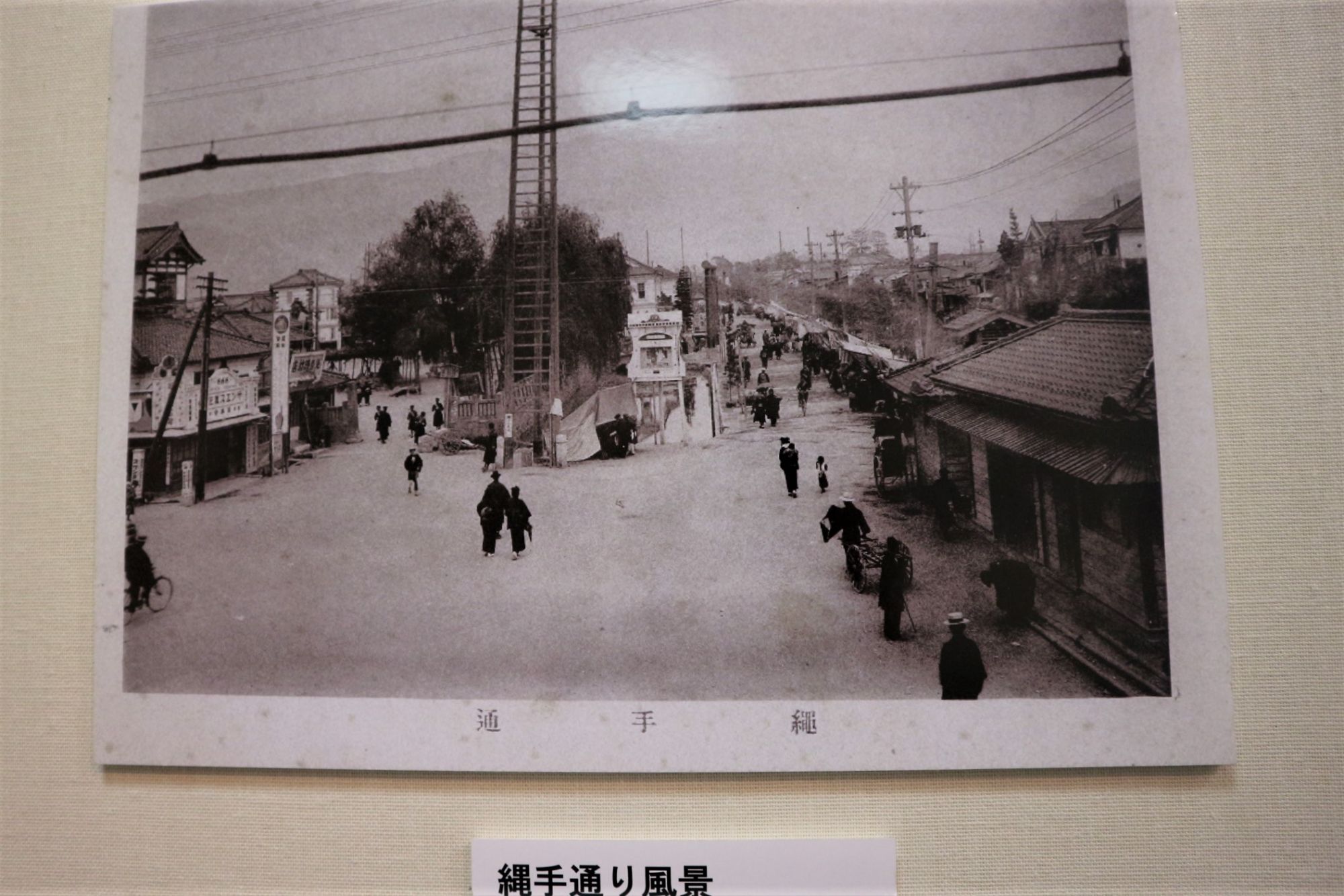 下の写真は大正時代の縄手通りの入口です。火の見櫓が見えます。