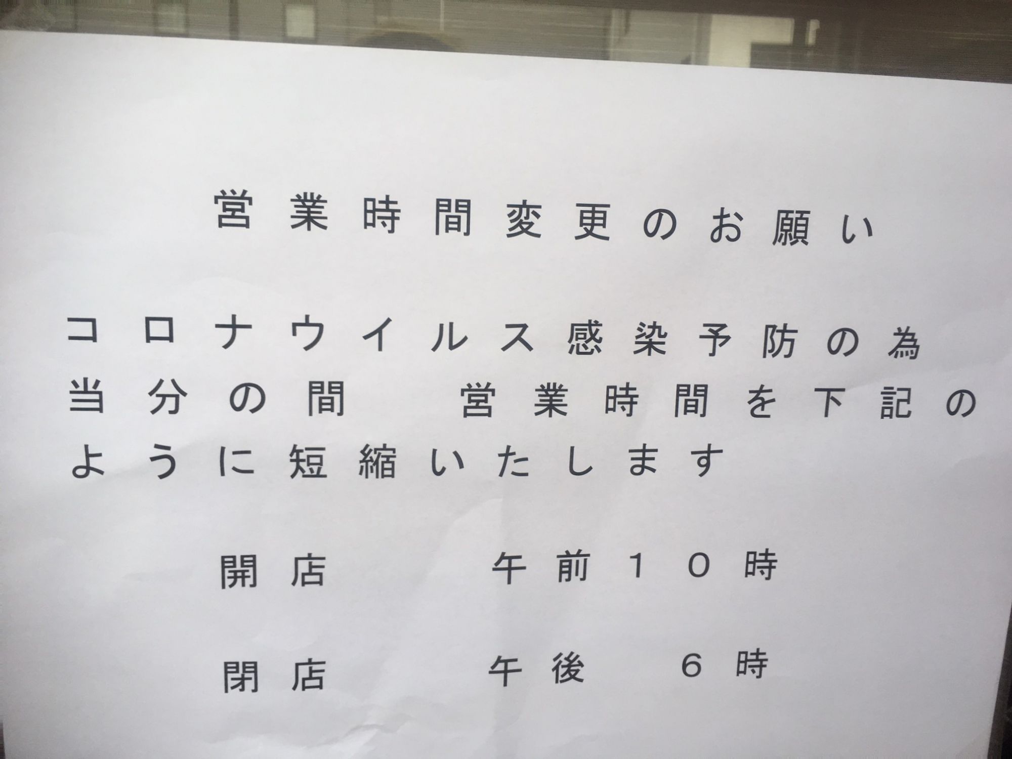 営業時間短縮のお知らせです。