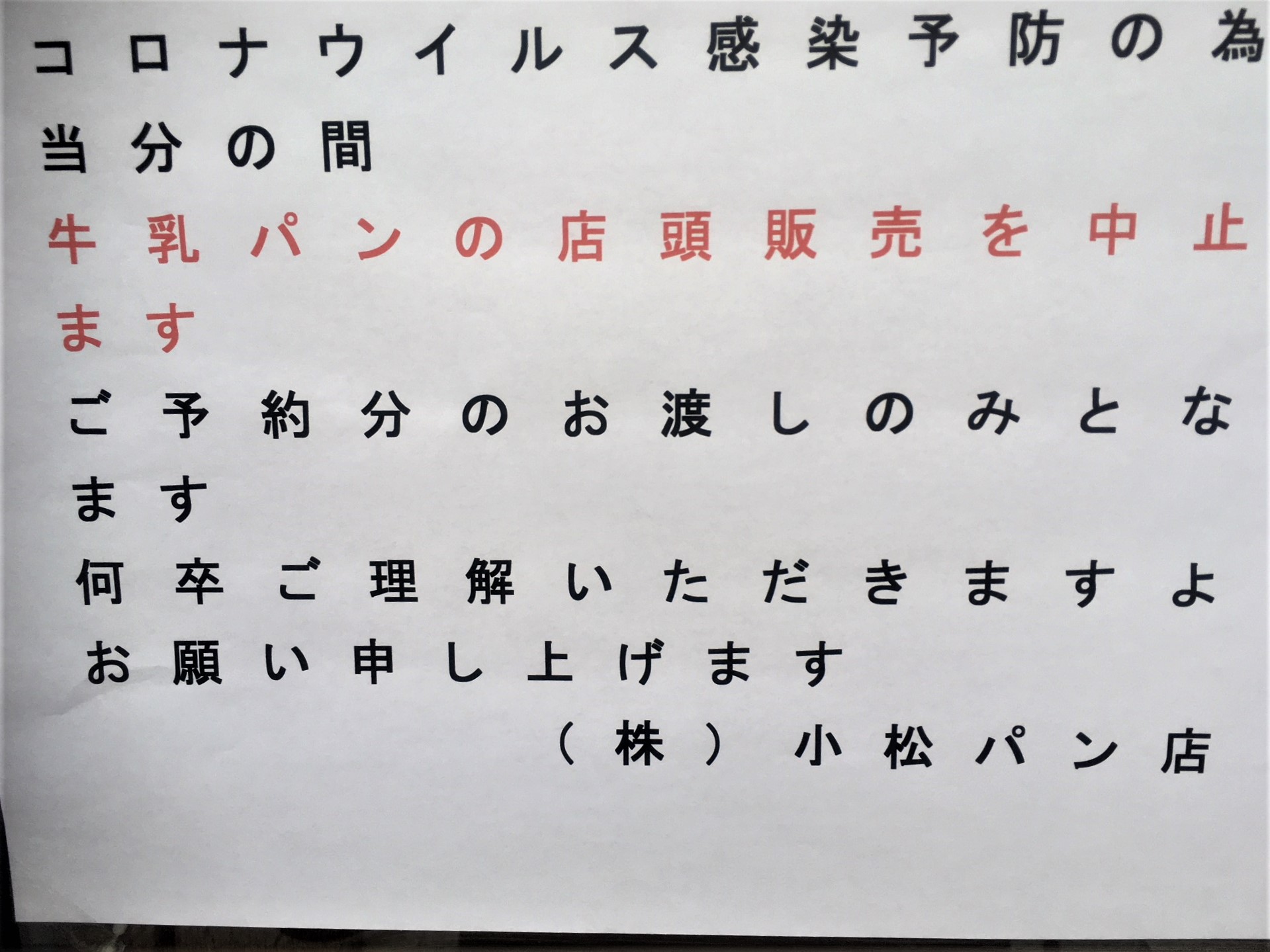 小松パンさんでは、営業時間変更のお知らせと先日「秘密のケンミンショー」というテレビ番組で「牛乳パン」が放送され、