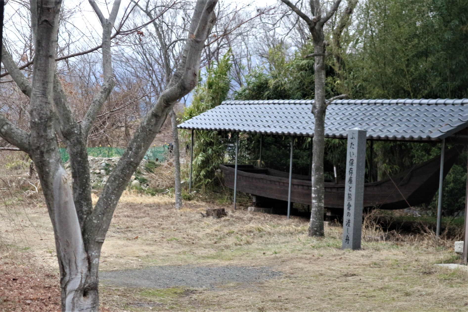 熊倉の春日神社北側に、使用されていた渡し船が残されています。