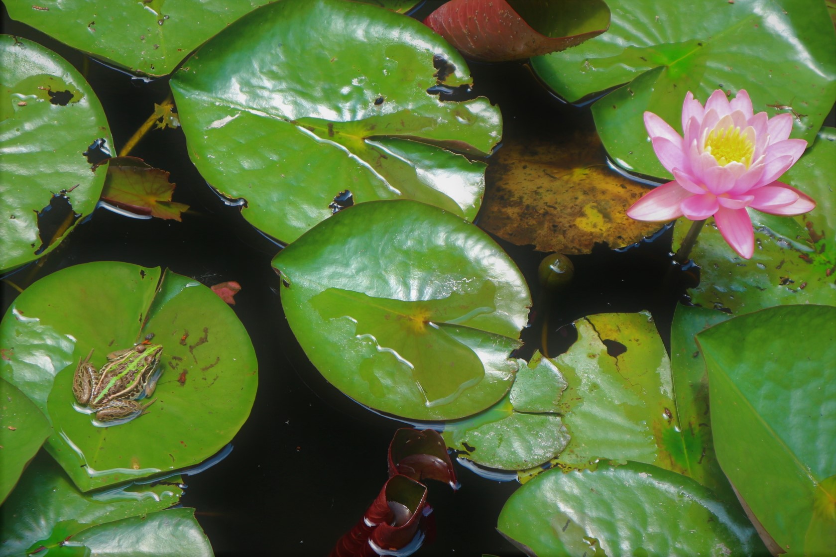 なんと蓮の葉の上に蛙さんが沢山いました!今年初めて発見しました。今までは気がつかなかっただけかもしれませんが。