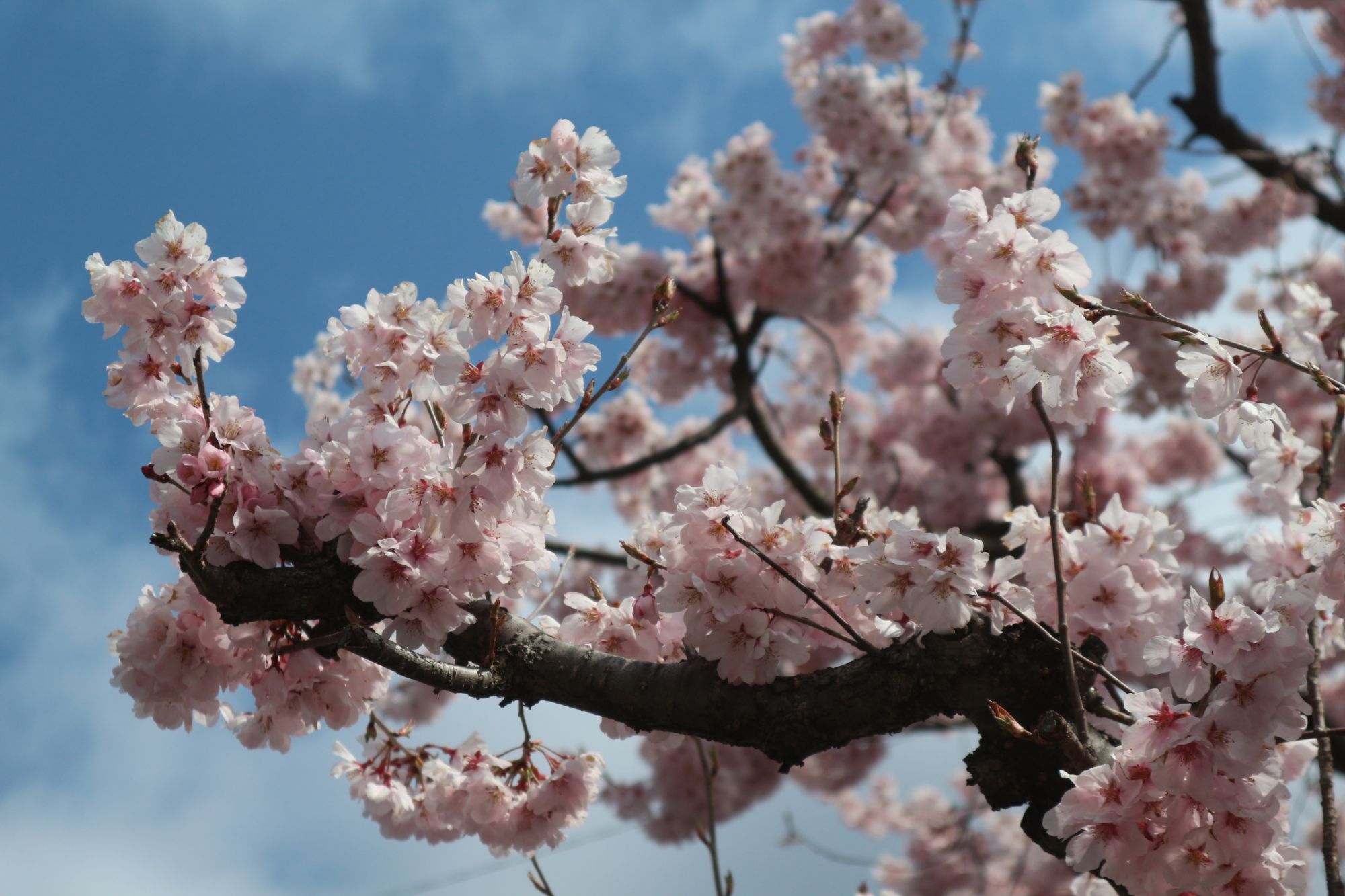 辰巳の庭のコヒガンサクラは、気温が低いお蔭で見頃が続いています。