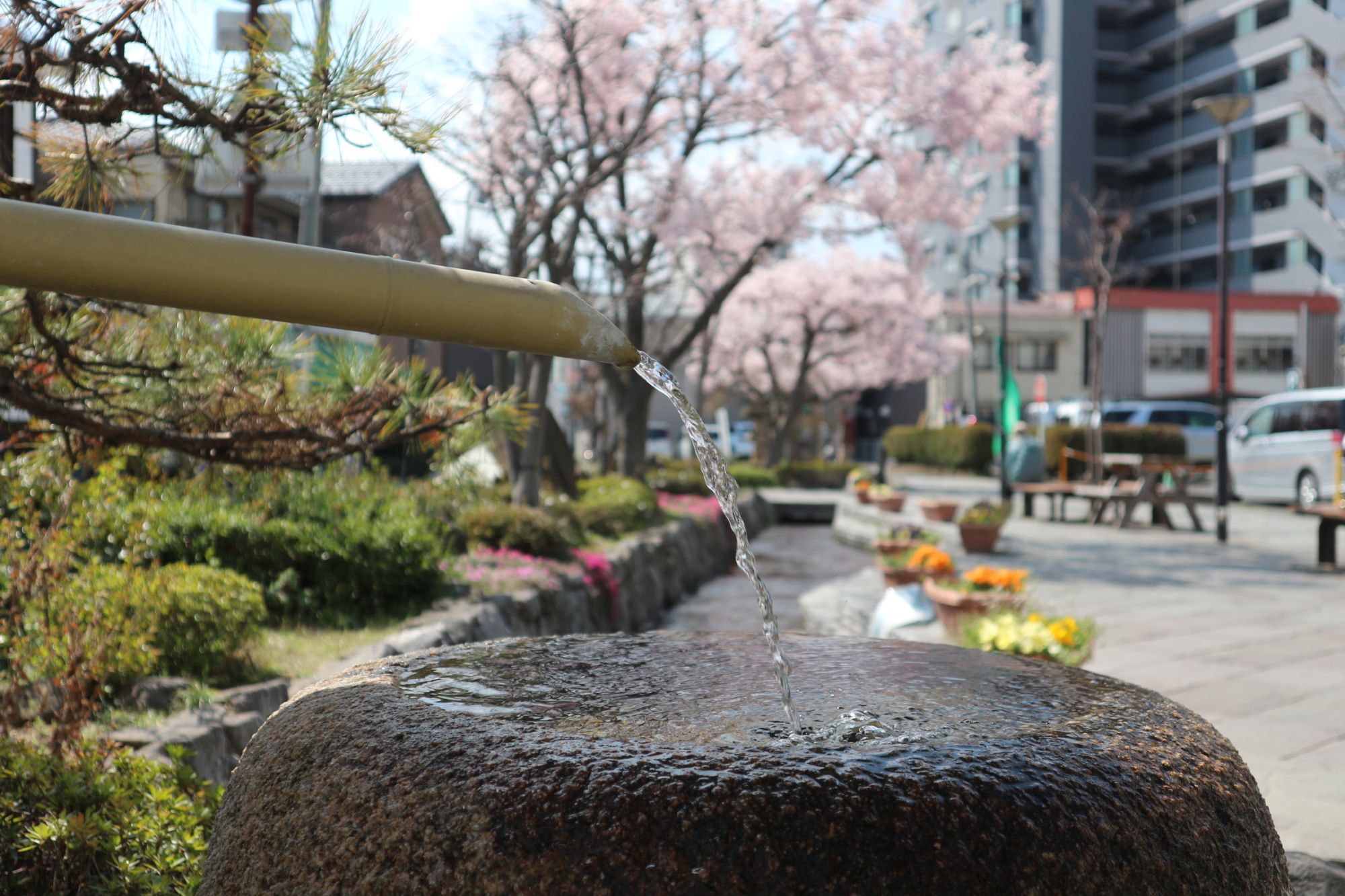 春になるとコヒガンサクラが咲き、街中で1番早く桜の名所になっています。