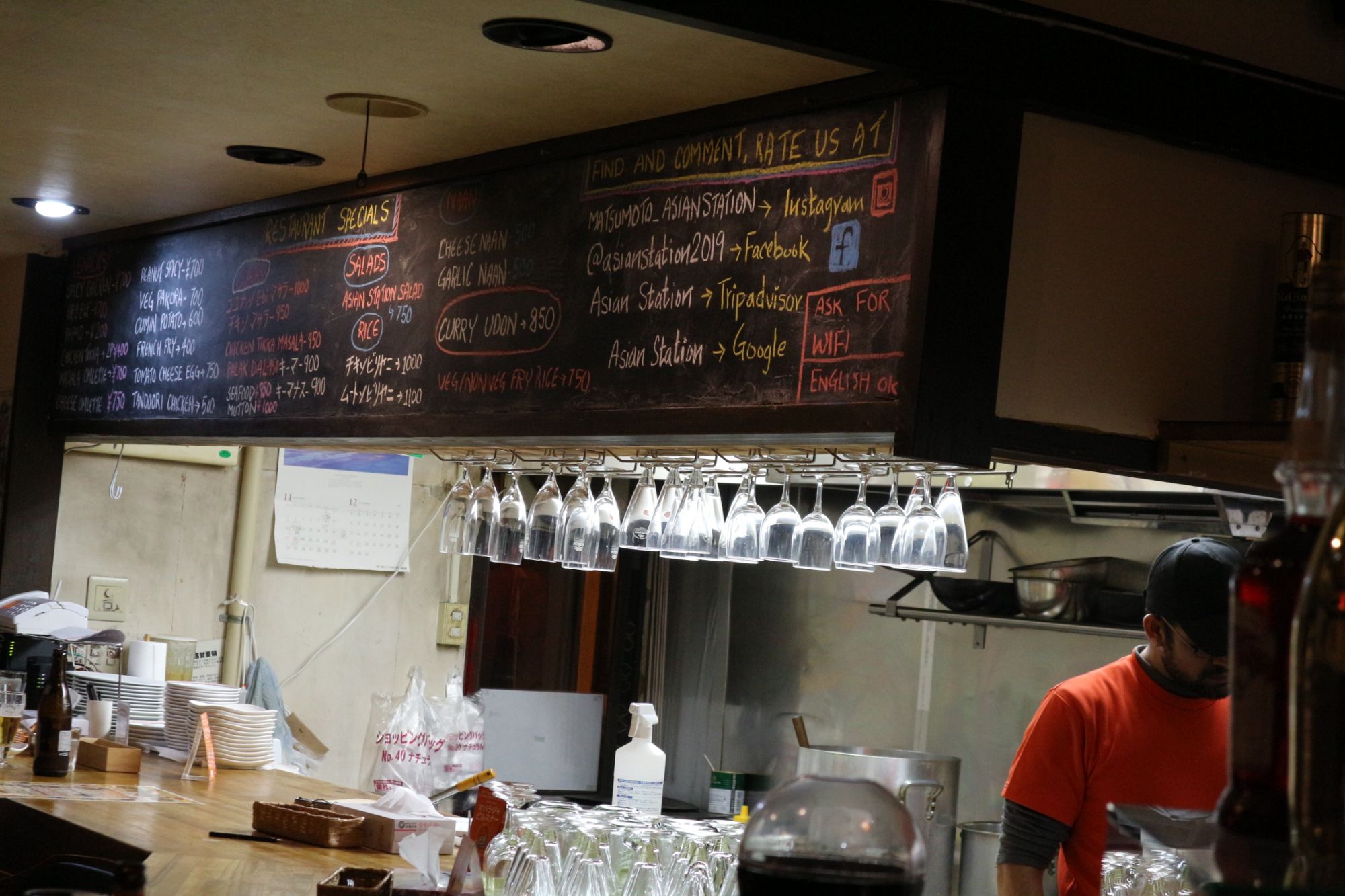 お客さんも外国人の方が多いです。黒板メニューは英語