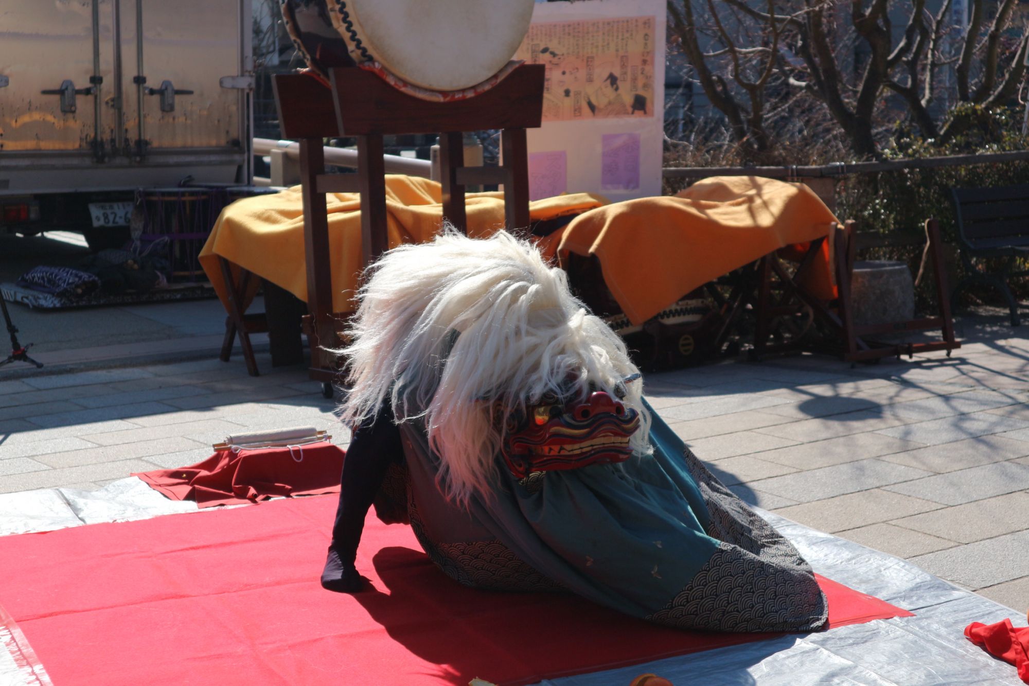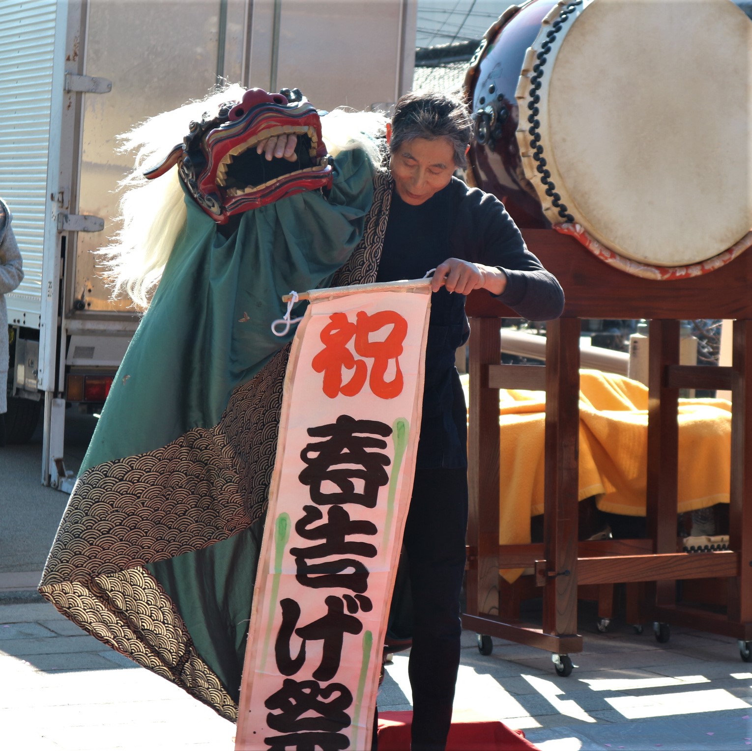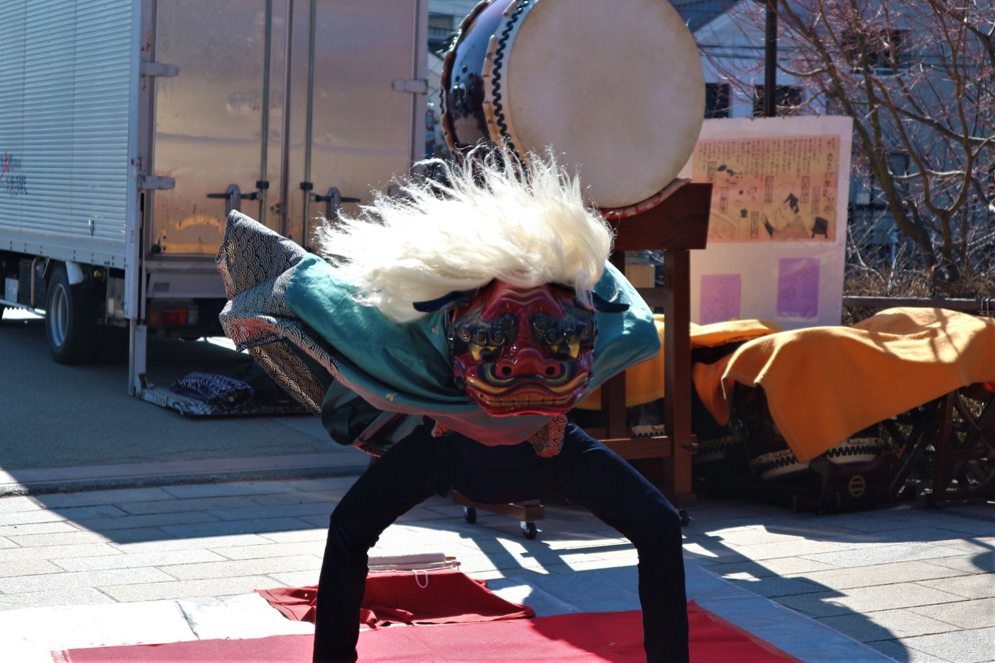 イベント当日は、寒い中でも日差しが暖かく大勢のお客さんが太鼓の演奏・伝統芸などを楽しんでいました。