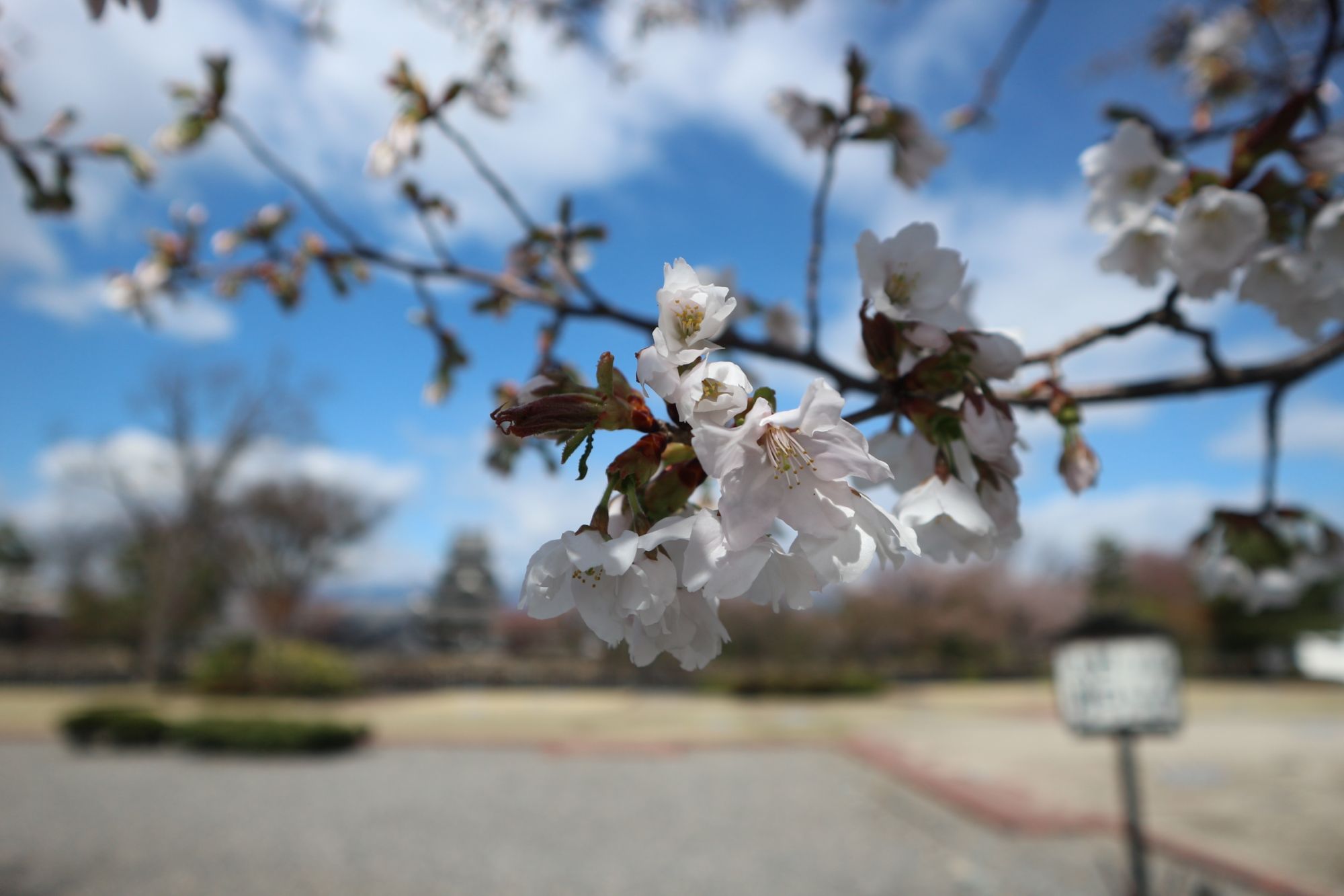 二の丸御殿跡の遅咲きの桜が咲き始めています。