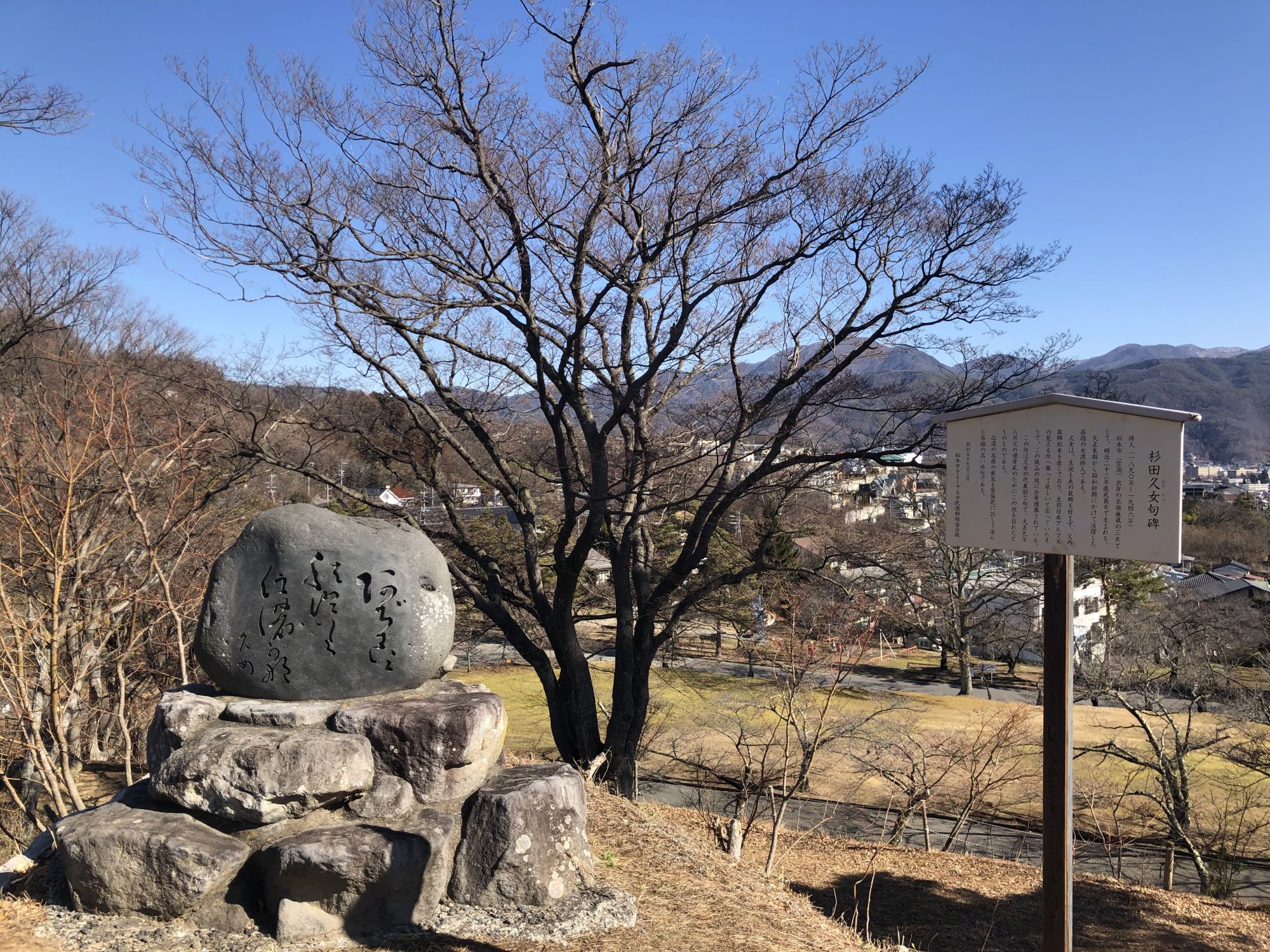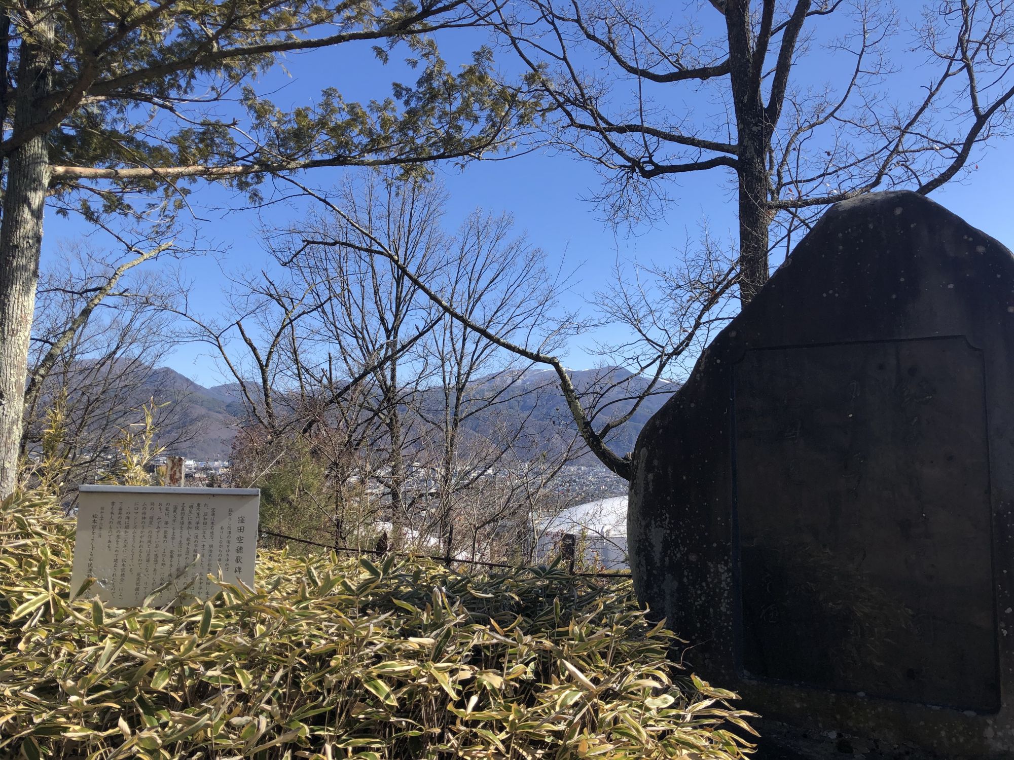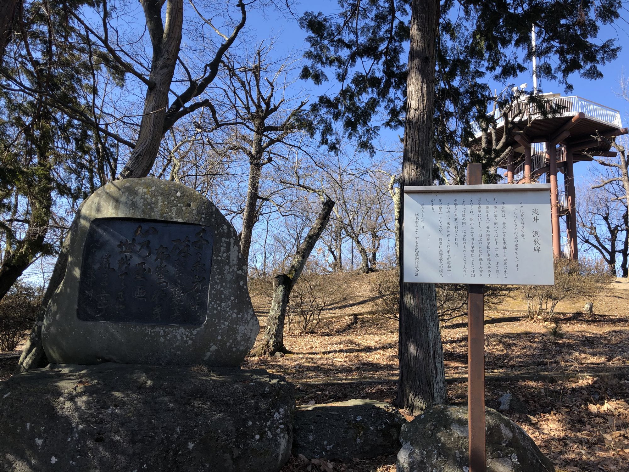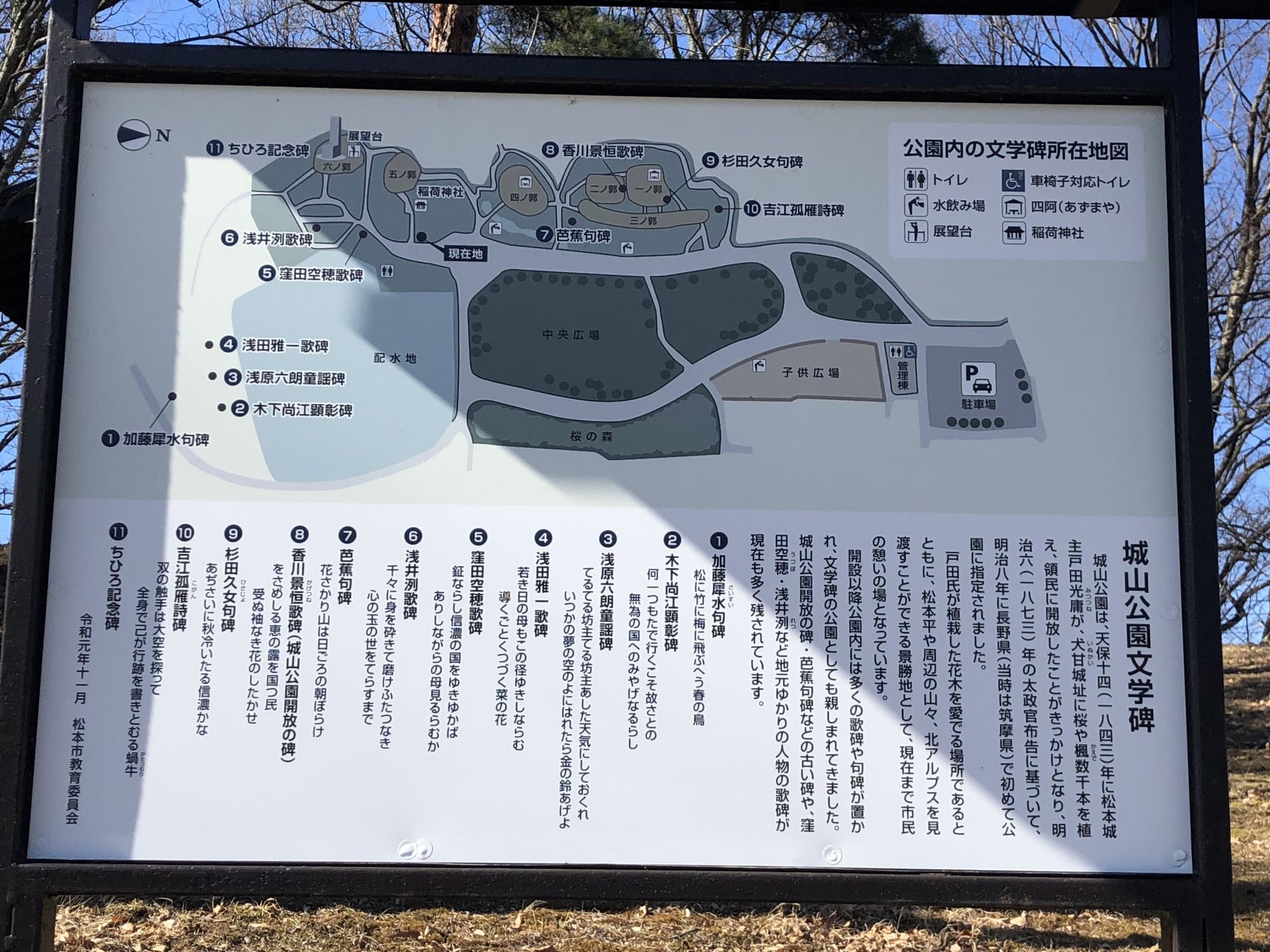 风光明媚的公园内,设有数处与松本有缘的歌人(诗人)的歌碑。