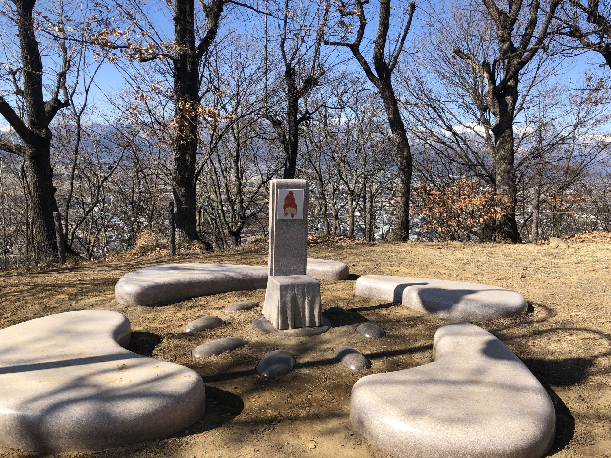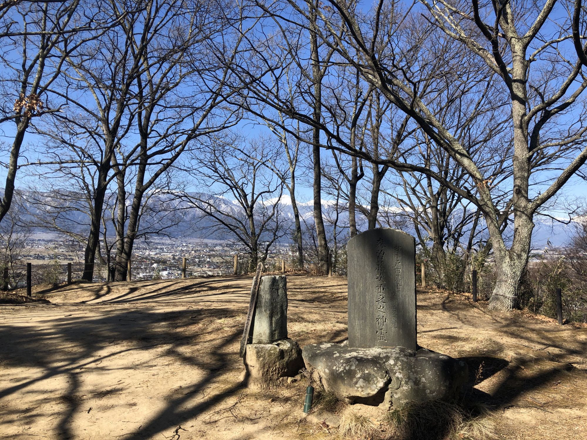 一气登到瞭望台上,啊,连绵的北阿尔卑斯连峰,尽收眼底!!既然观景的游人少,且不去访寻一下公园内设的不少文人墨客之碑。