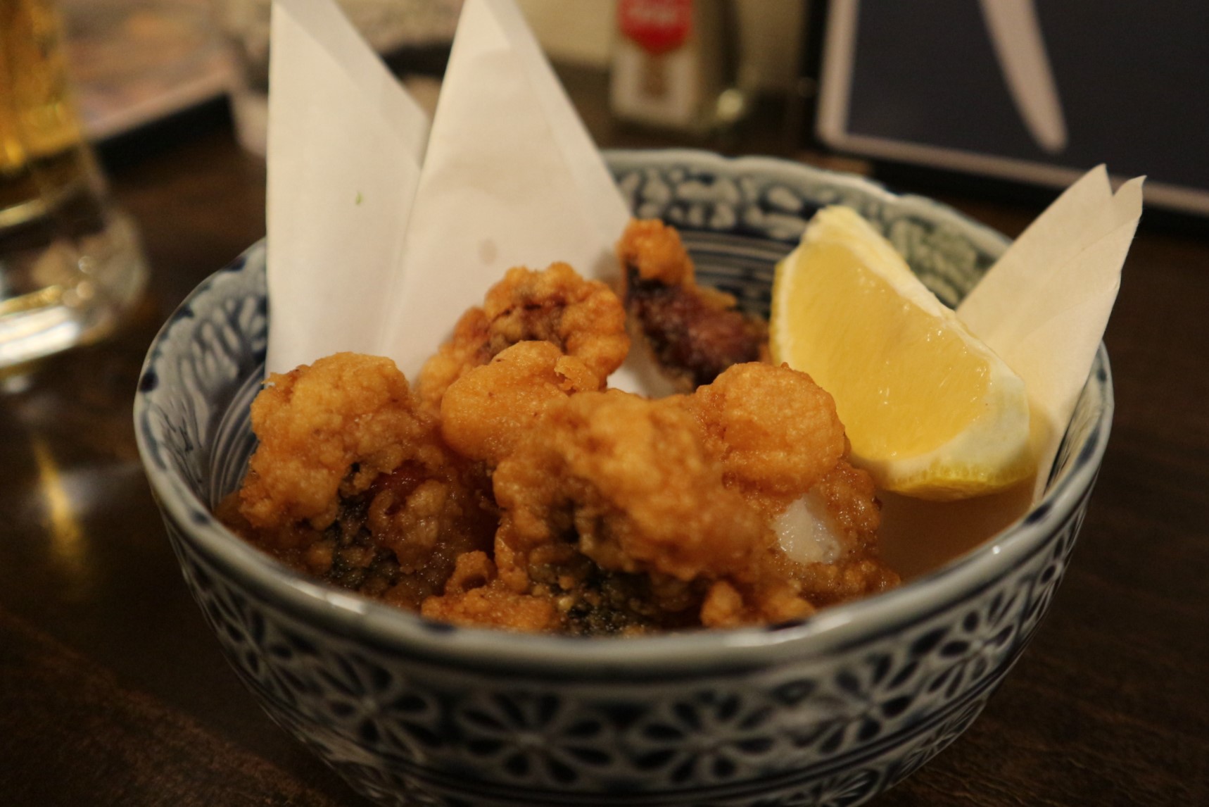 お通し400円 タコの唐揚げ500円 レモンサワー300円