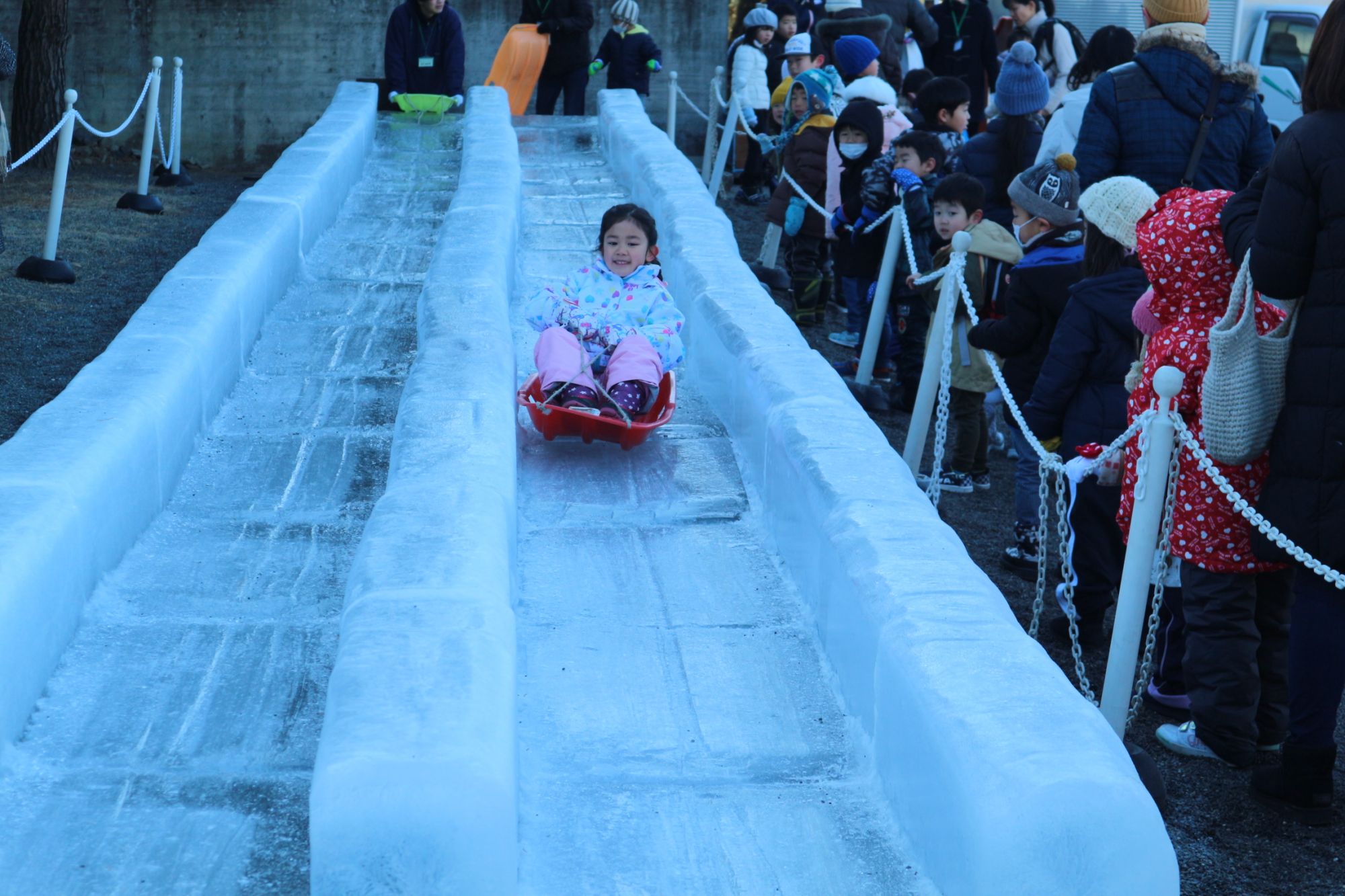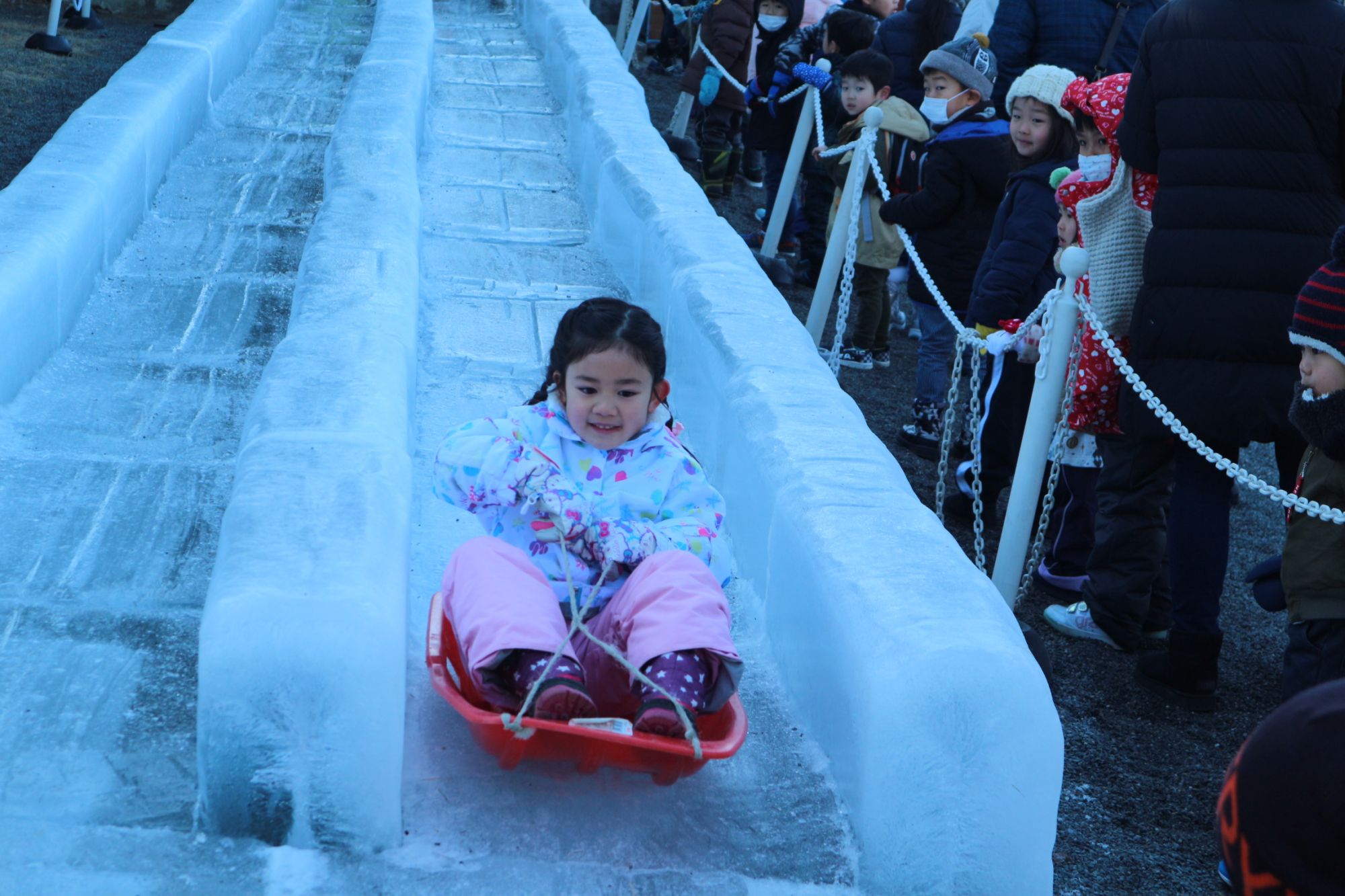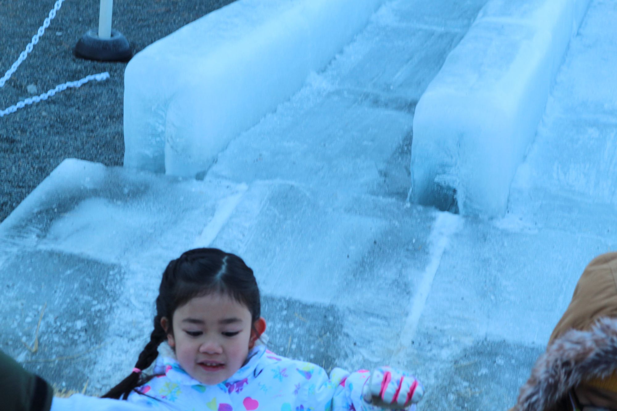 本物の氷の滑り台は、子供たちの心をとらえます。