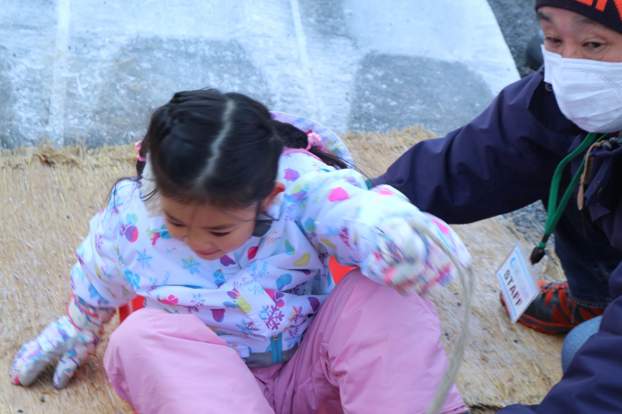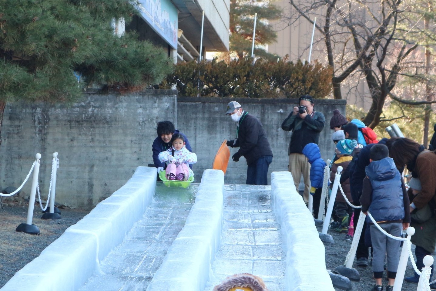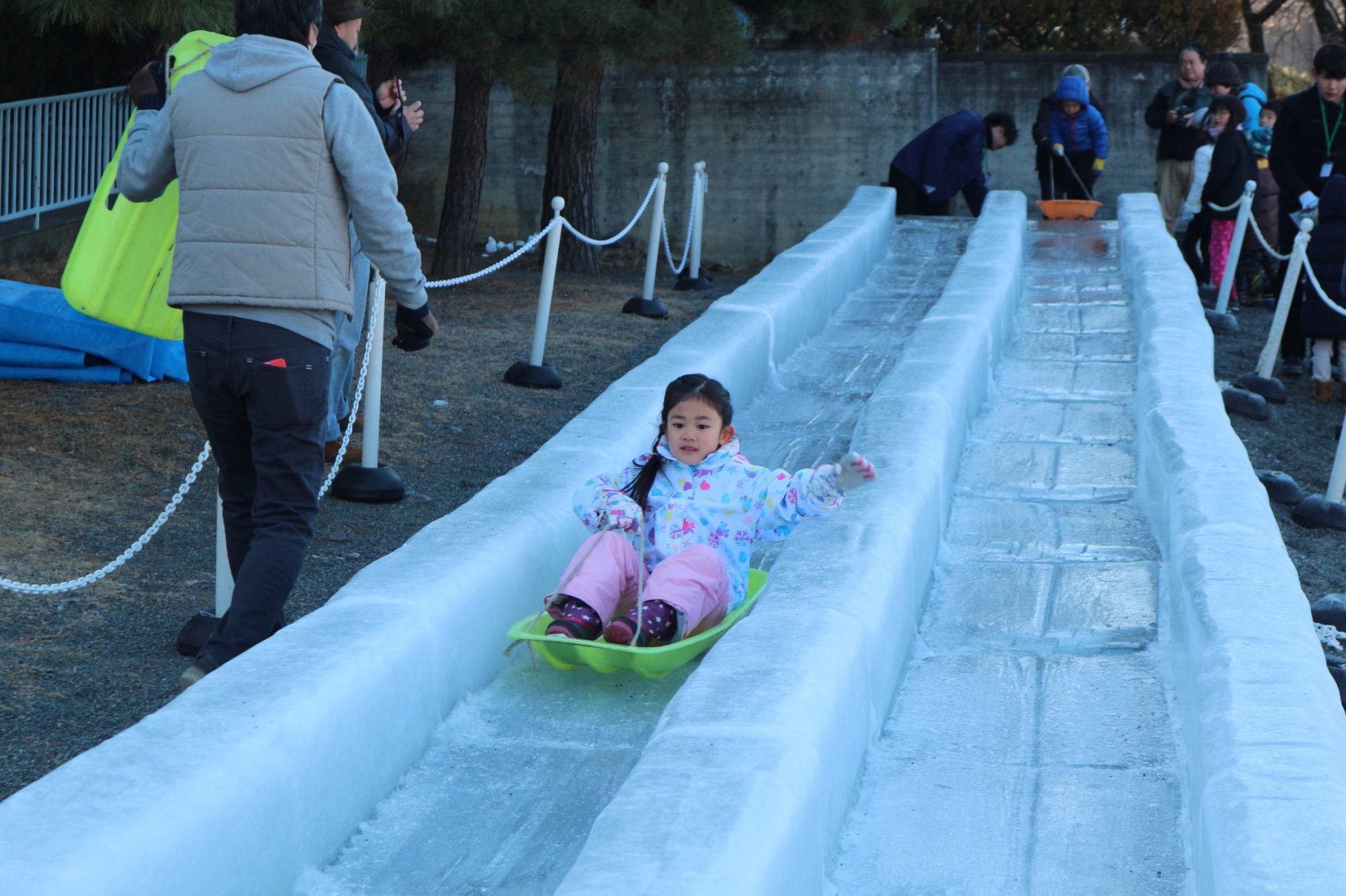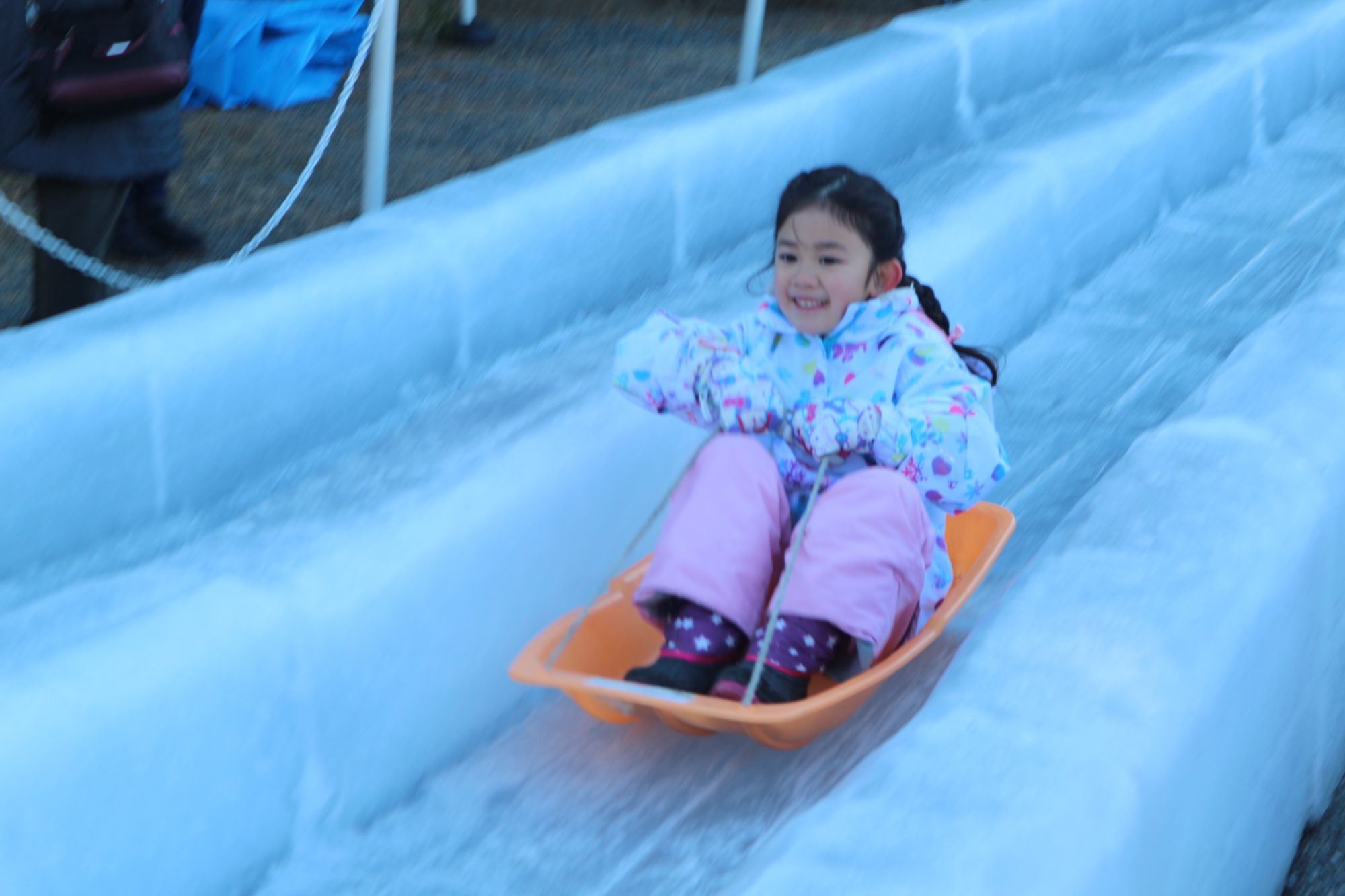 本物の氷の滑り台は、子供たちの心をとらえます。