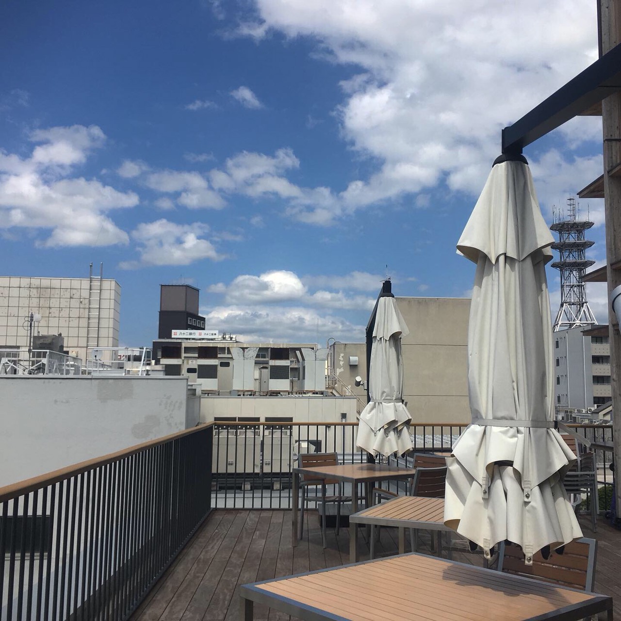 3階の西側テラスの1部は、誰でも使用出来ます。当日は水曜日で松本ブルワリーはお休みでした。パラソルが閉じられているところがブルワリーのスペースです。