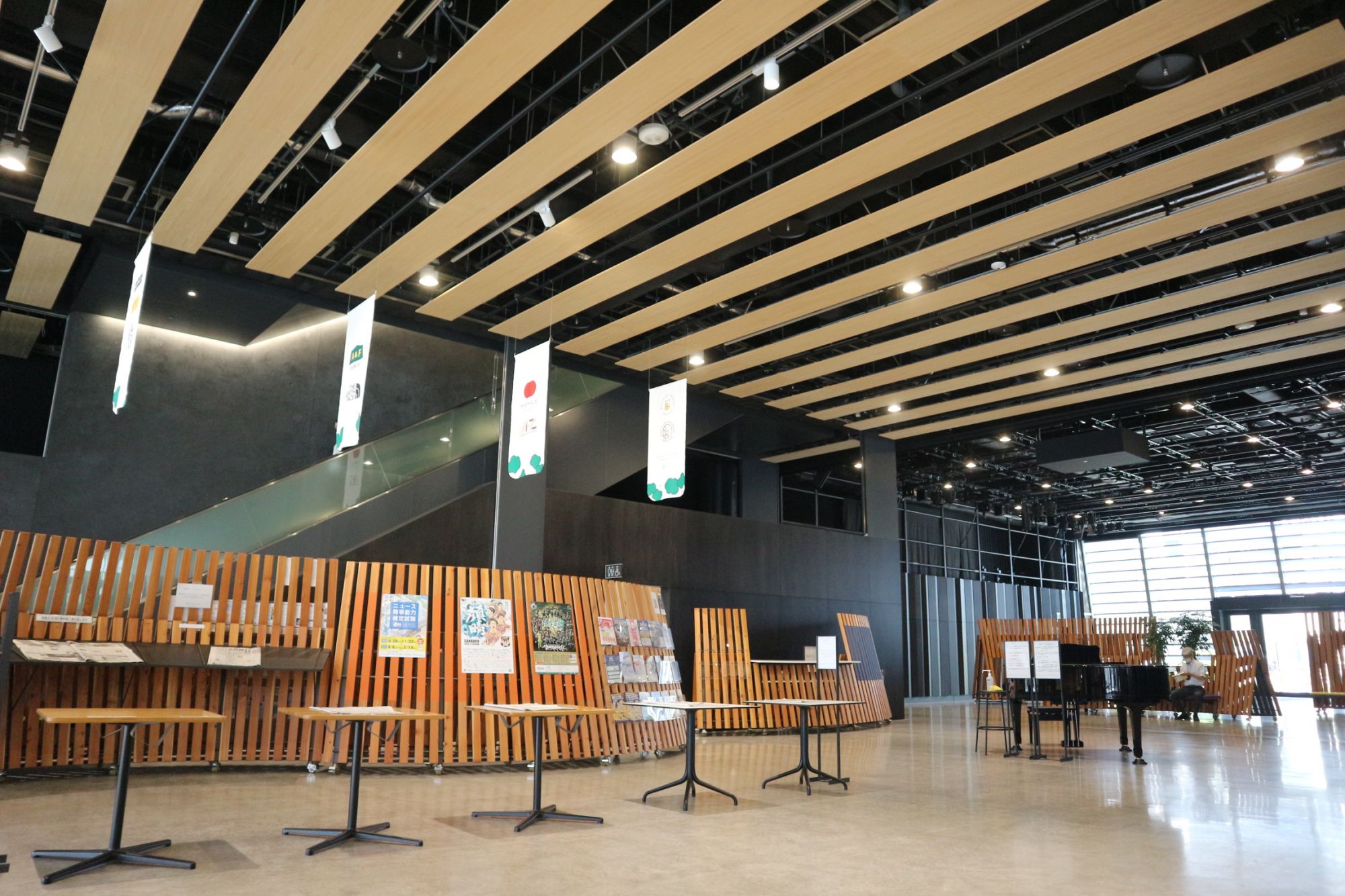 内部も木をふんだんに使った高い天井が特徴的です。1階には信濃毎日新聞をはじめ各社の新聞を自由に読めます。