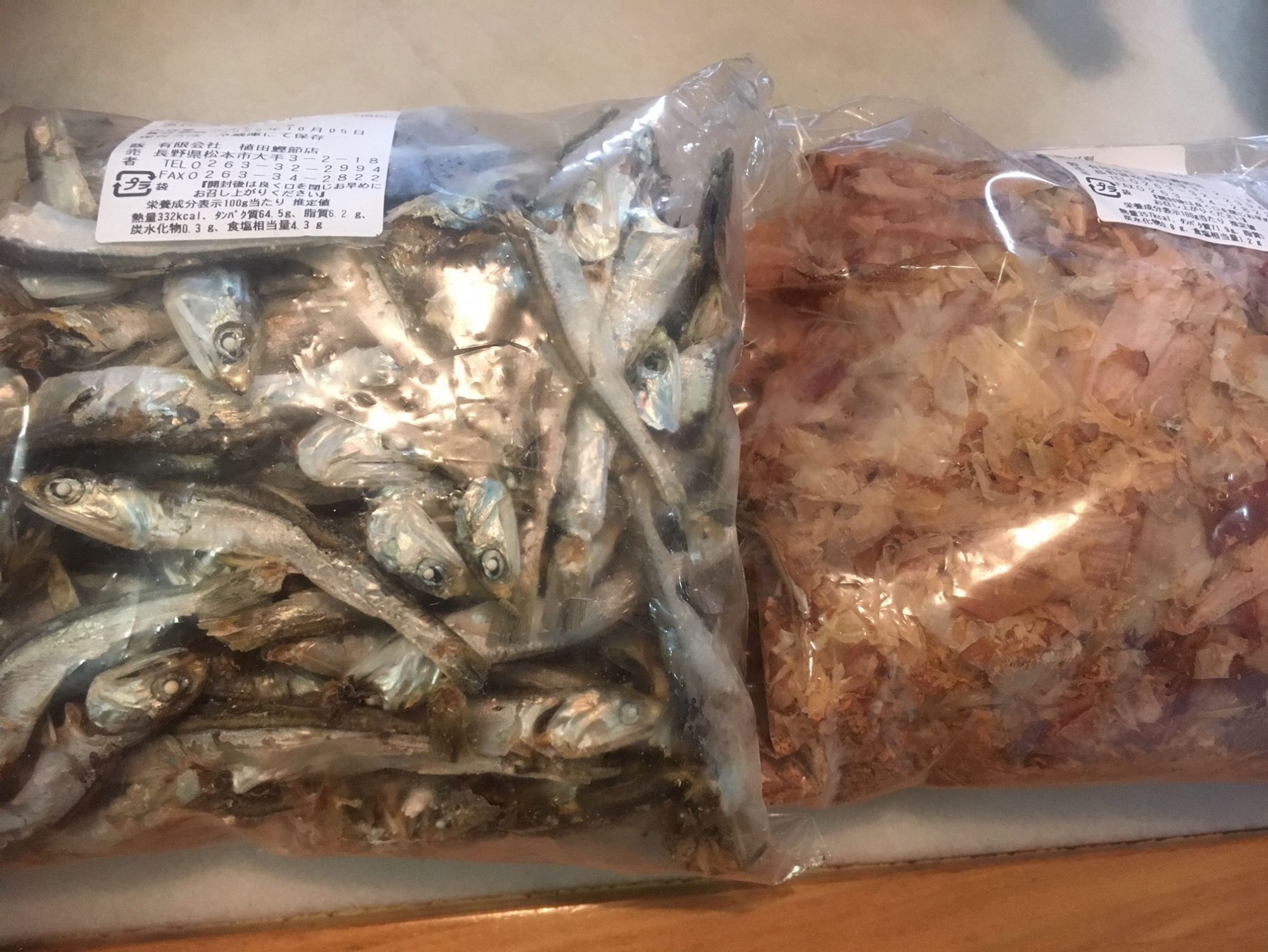 コロナ対策として通常の量り売りは行われていません。煮干し・かつお節等は500円、1,000円で注文します。