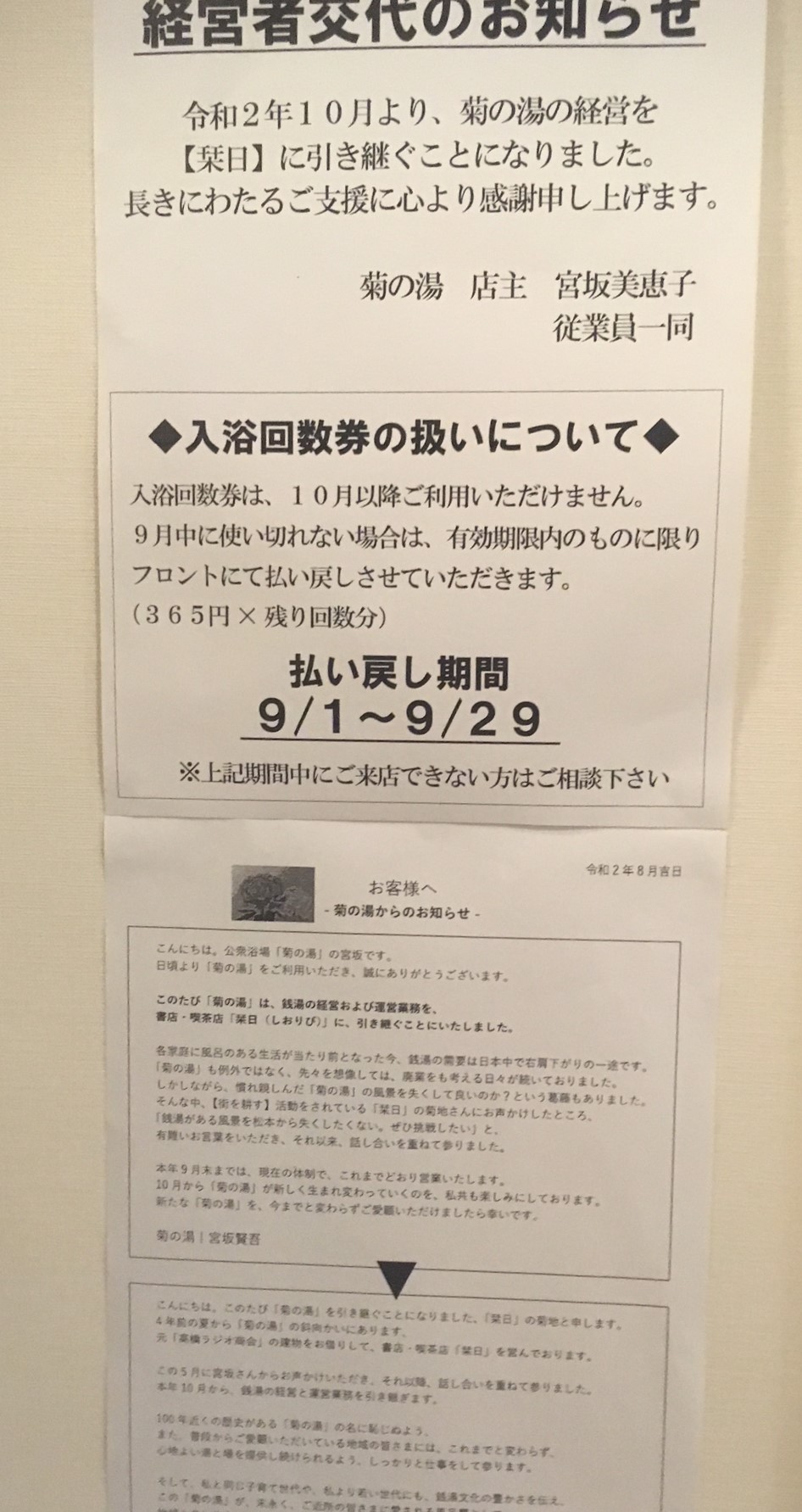店の隣に銭湯「菊の湯」さんがあります。浅間や山辺の温泉銭湯には行くことがありますが、街中の銭湯には行ったことはありませんでした。