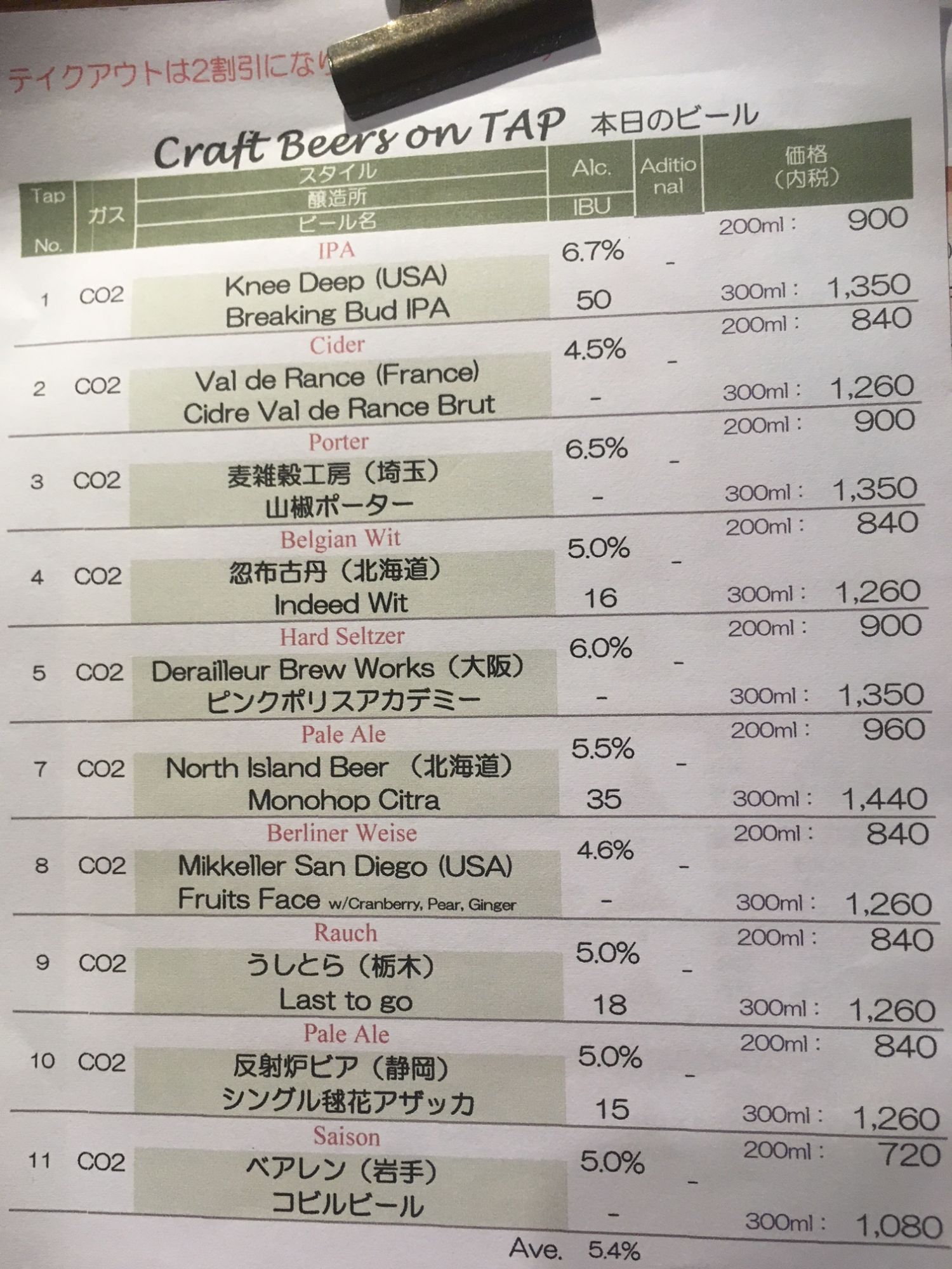 本日のビールメニュー11種から1杯注文します。カウンターの中には、11種類のビールが出てくるサーバーがあります。