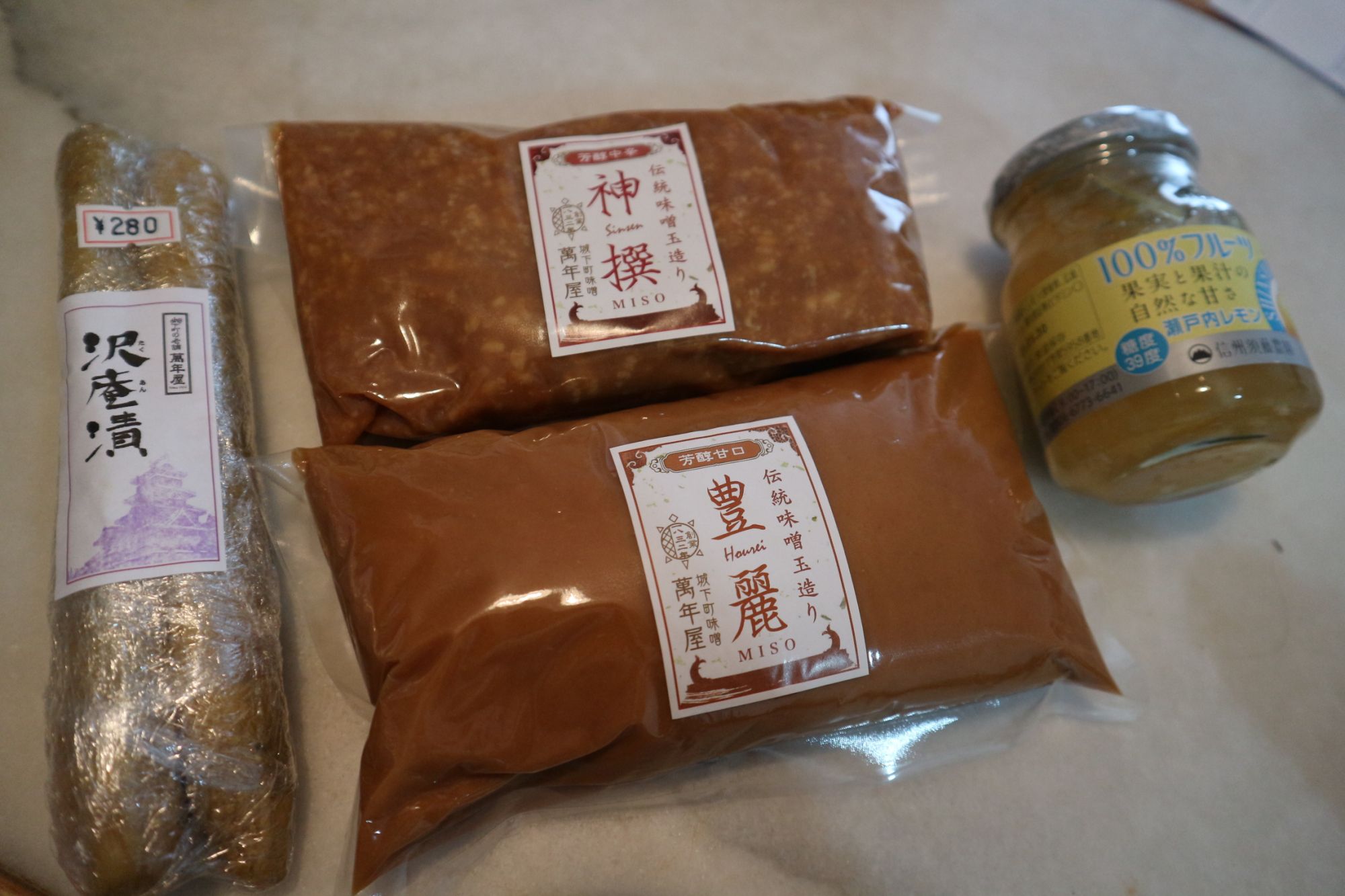 2種類のお味噌・沢庵漬・ジャム(瀬戸内レモン)