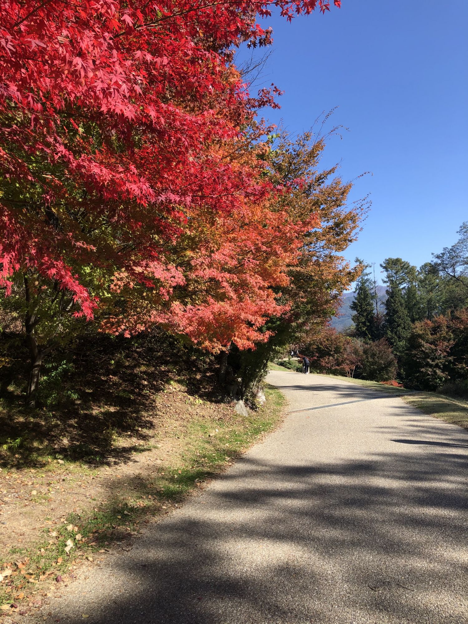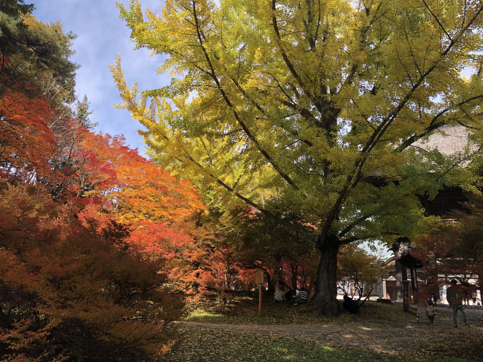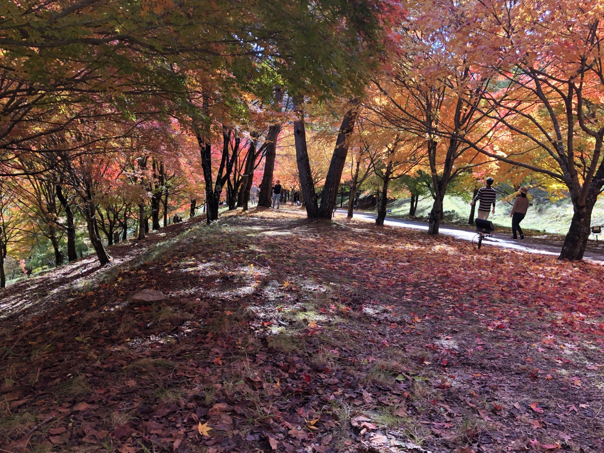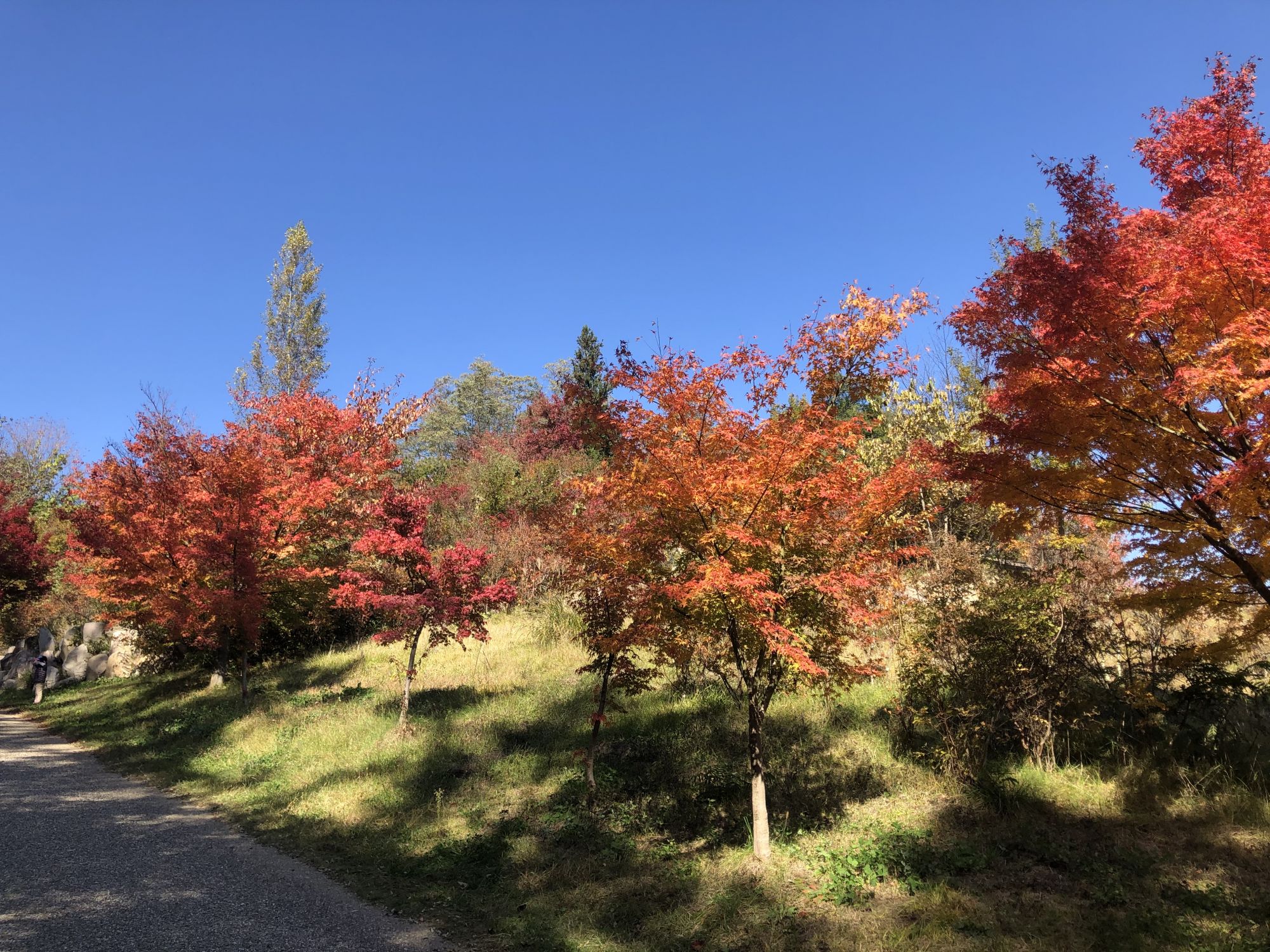 松本市内及周边的秋红,美极了! Thu, Nov 5, 2020 ♥36 松本城附近的四柱神社⛩ 松本市内奥尔匹斯公园↓ 还没看够的话,从松本朝北开车40分钟,至大町的灵松寺,会是另一番景致↓ 再从松本朝南开车40分钟,穿过盐尻市,至箕輪町的红叶湖,更是红彤彤的一片,让人惊叹↓