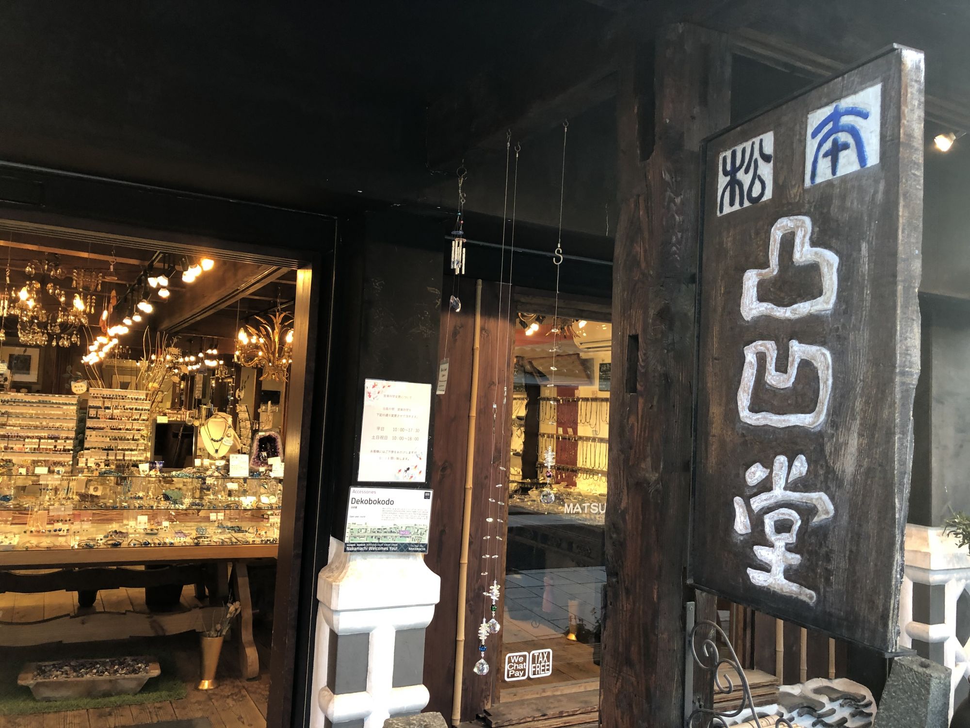 松本街头各具特色的汉字招牌(之一) Sun, Sep 27, 2020 ♥38 日本街头到处是琳琅满目的汉字招牌,好多很具特色,充分发挥了汉字的艺术造型。 今天到了松本市内的中町街上随便拍了几张。 逛街完后去的寿司店“鱼米”(不在中町,在松本市的并柳),店内满墙的鱼字旁日创汉字,真为一绝!! 到处是汉字标致 这家 吴竹 店很竹子味道 日语也有凹凸二字,但凸字在前 一家杂货店 一家小寺庙的水池边 米上加鱼,当然是寿司店了 古色古香的咖啡店