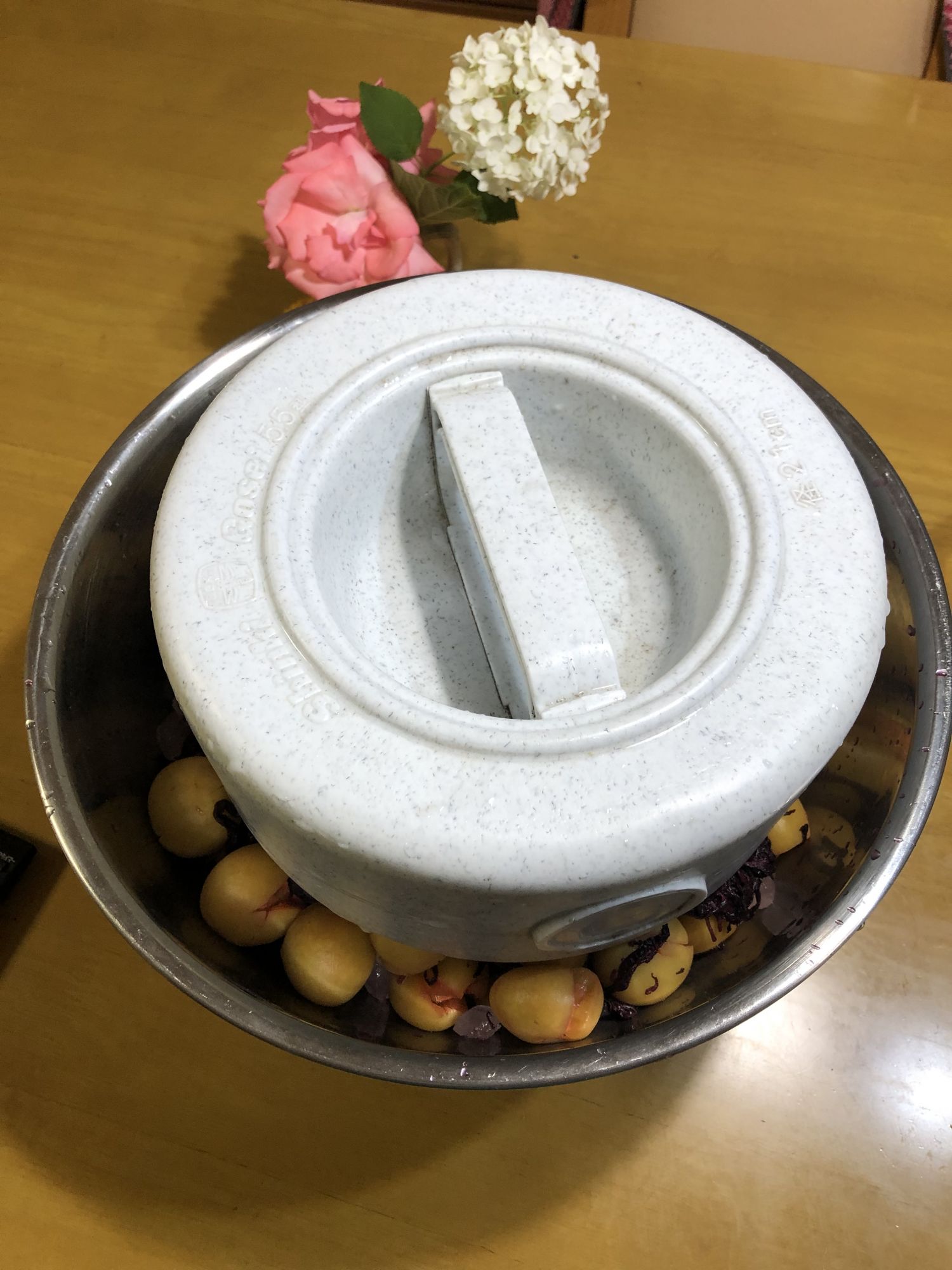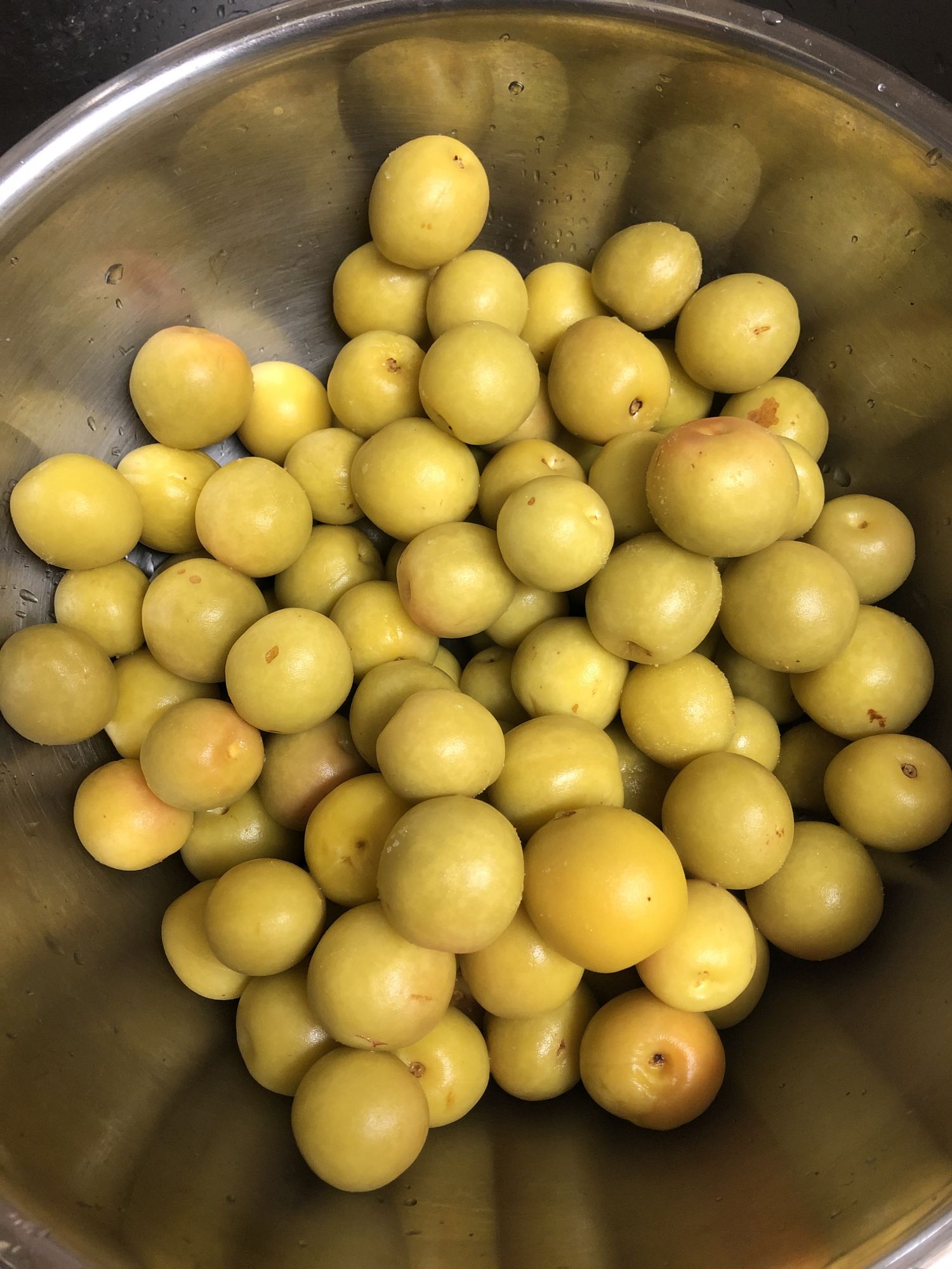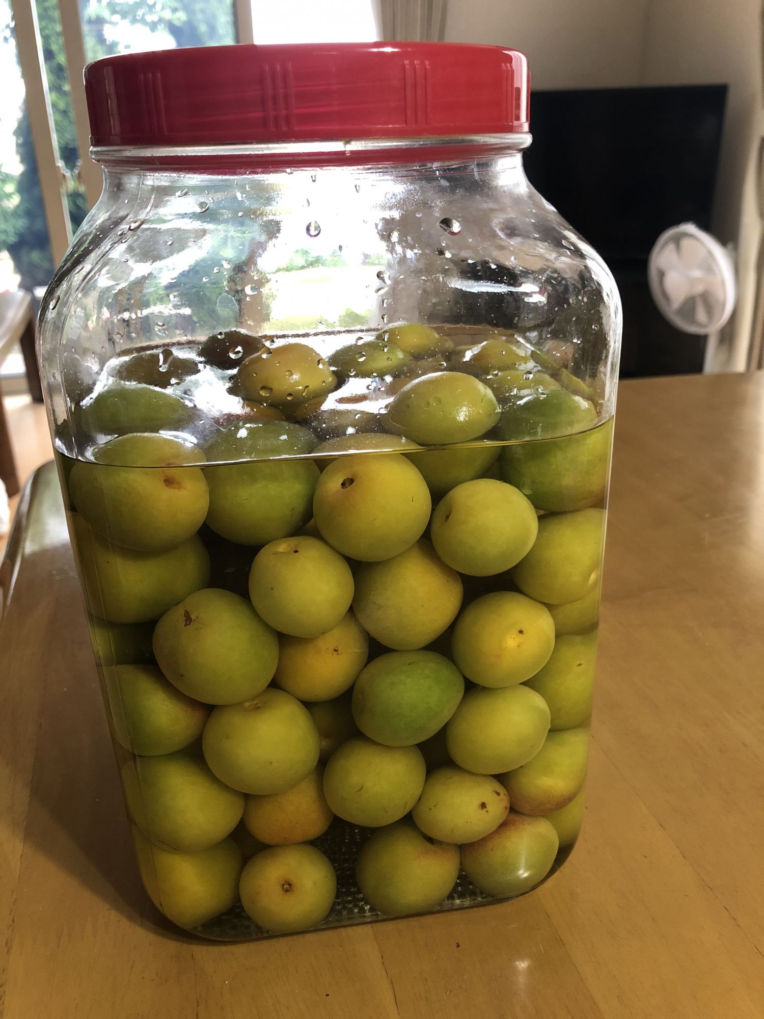 梅子熟了 Tue, Jun 30, 2020 ♥39 梅雨季节,阴雨朦朦;梅子成熟,清香扑鼻。 家里院子里的一棵梅树结果,首次想试试做酸梅. 院子里的小梅树 硕果累累 准备配料 泡上醋 醋泡一整天后,变色了 超市卖的紫苏 一嫩一老 撒上盐搓揉 慢慢出紫色 搓好会成这样深紫色 超市有卖现成的 光放冰糖可做梅汁饮料 想快喝到,可放到冰箱里冷冻一下 让醋泡黄了 三者拌在一起 压上石头,完成了 朋友传授的配方 超市的制梅专柜 这样放在阴凉处两星期后,在放到冰箱里,等梅雨结束后,就可以吃到了。真有点儿等不及了!