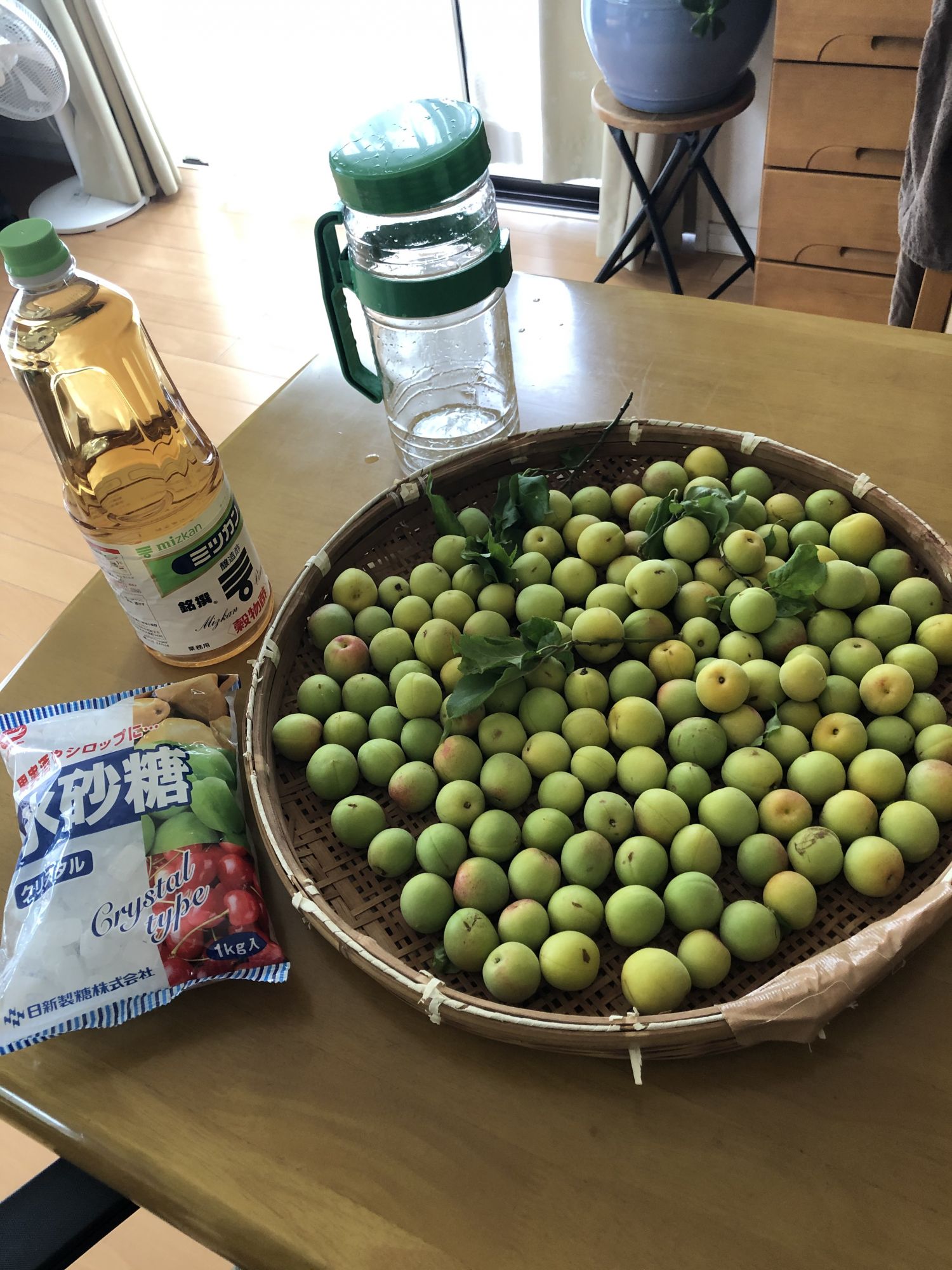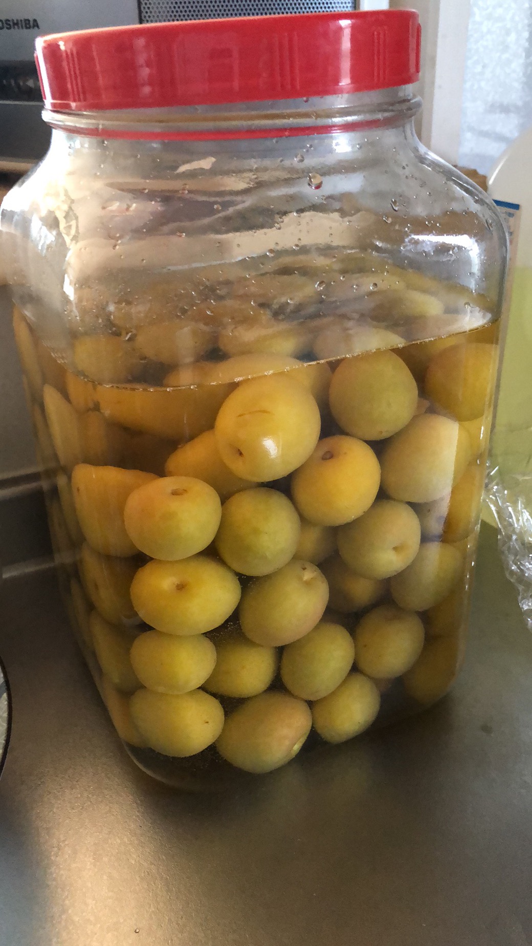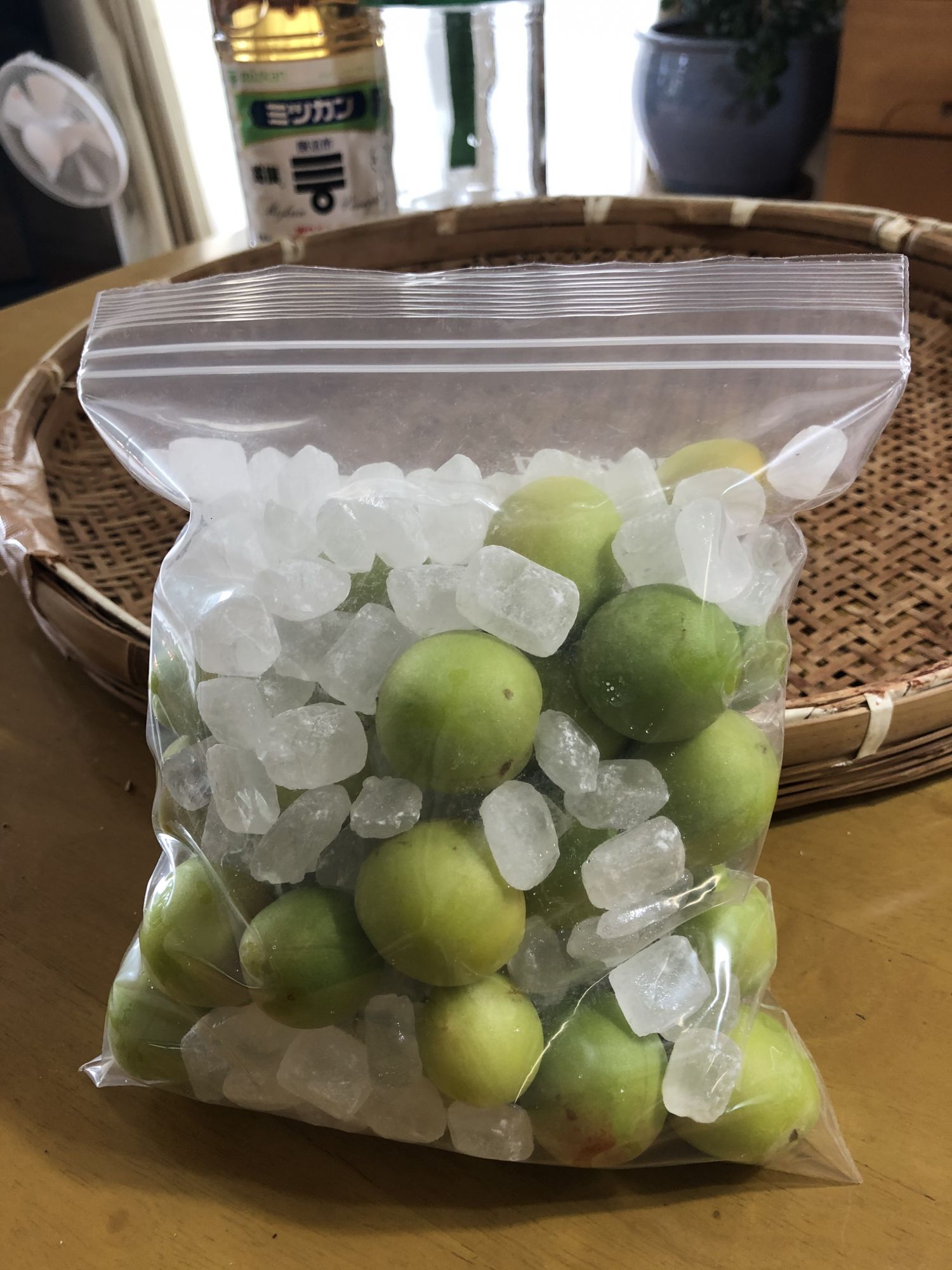 梅子熟了 Tue, Jun 30, 2020 ♥39 梅雨季节,阴雨朦朦;梅子成熟,清香扑鼻。 家里院子里的一棵梅树结果,首次想试试做酸梅. 院子里的小梅树 硕果累累 准备配料 泡上醋 醋泡一整天后,变色了 超市卖的紫苏 一嫩一老 撒上盐搓揉 慢慢出紫色 搓好会成这样深紫色 超市有卖现成的 光放冰糖可做梅汁饮料 想快喝到,可放到冰箱里冷冻一下 让醋泡黄了 三者拌在一起 压上石头,完成了 朋友传授的配方 超市的制梅专柜 这样放在阴凉处两星期后,在放到冰箱里,等梅雨结束后,就可以吃到了。真有点儿等不及了!
