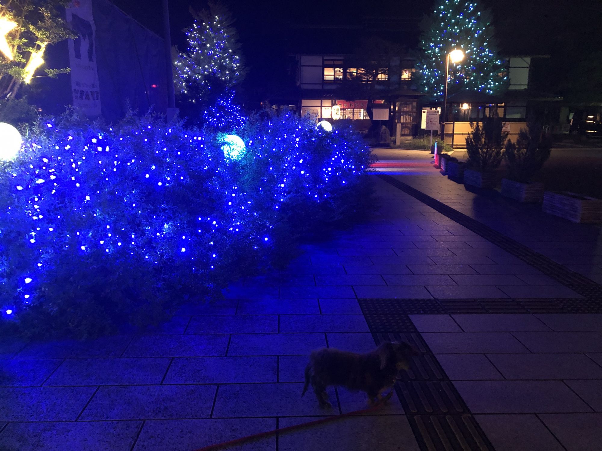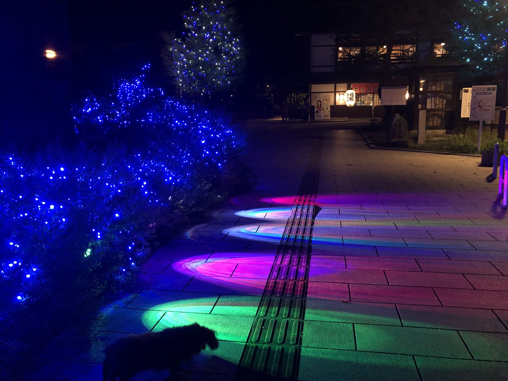 2020年的梅雨季节比往年都长,总是不见晴天。晚饭后,见明月悬空,很想去附近转转。听说去年开始的浅间温泉入口夏季灯会,今年又开始了,就牵着狗去溜达溜达????
