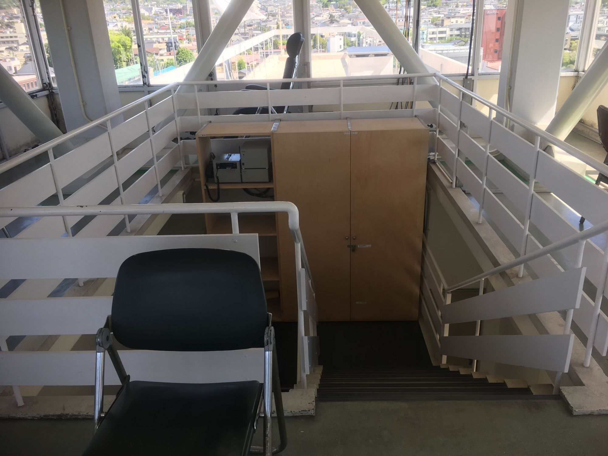 市役所本庁舎5階までエレベーターで上がり、そこから階段を昇ります。
