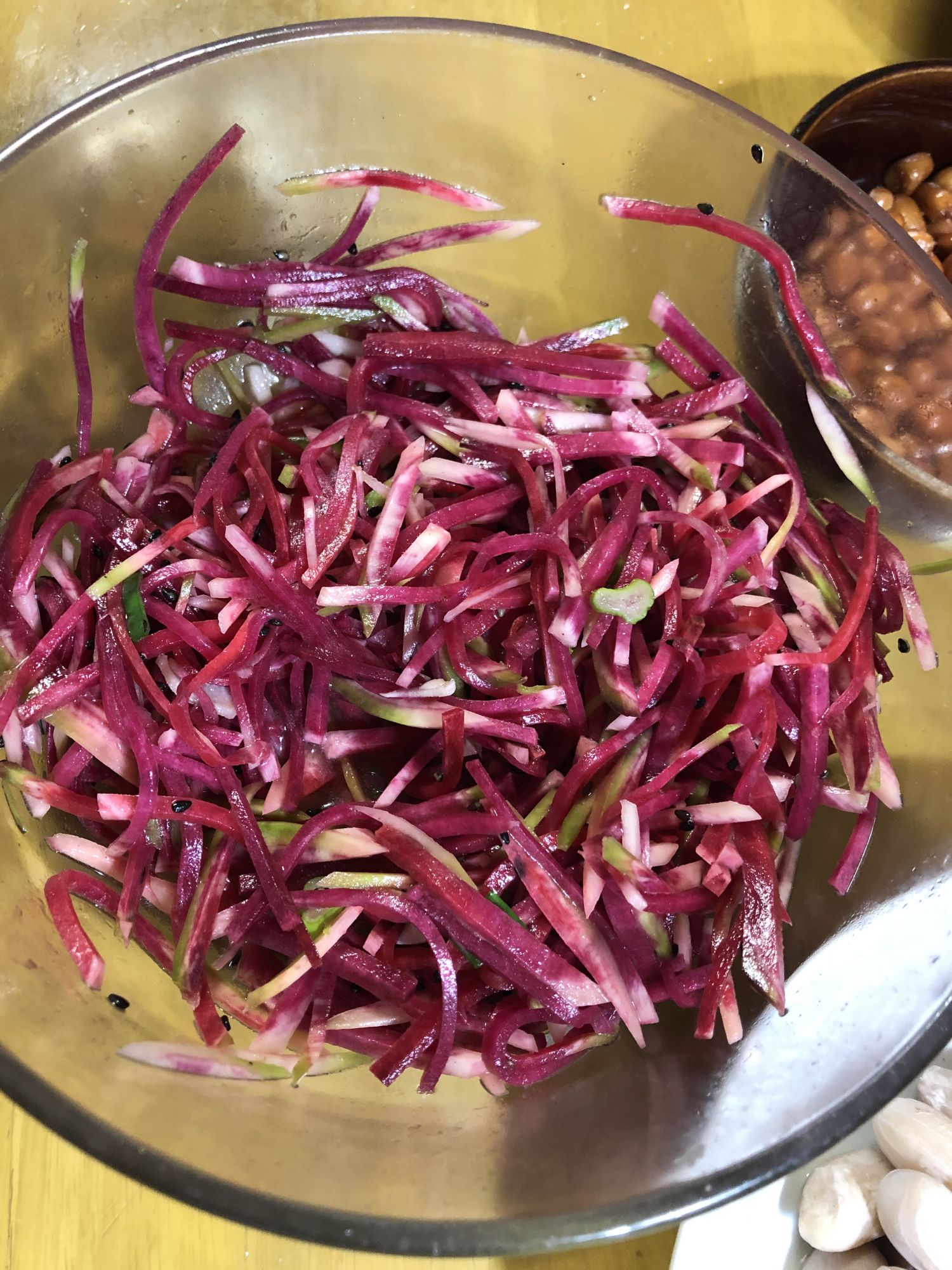 拔完花生回家的路上,路过今井农贸市场,又见到一些小时候在国内常吃,但在日本很少见的食物:心里美萝卜、灵芝。