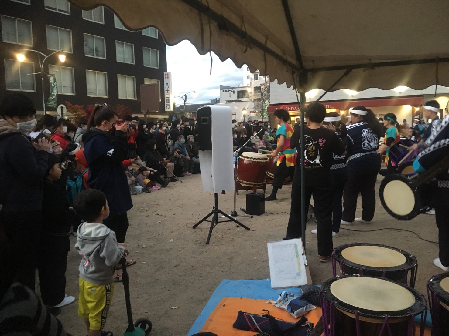 桝形跡広場では、17時最後の演奏 浅間温泉火焔太鼓の皆さんの熱い演奏に多くの方が見入っていました。