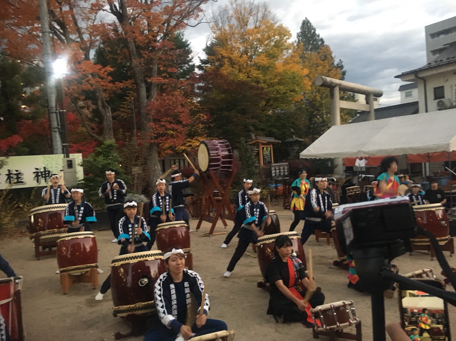 とても近い場所で同時の太鼓演奏 当時1日近隣では、太鼓が鳴り響いていました。