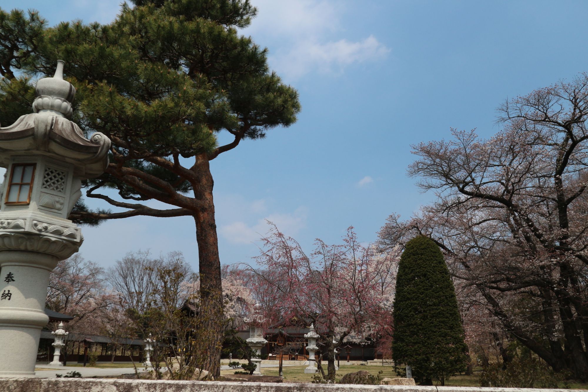 広い境内には、数種類の桜の木が花を咲かせていました。