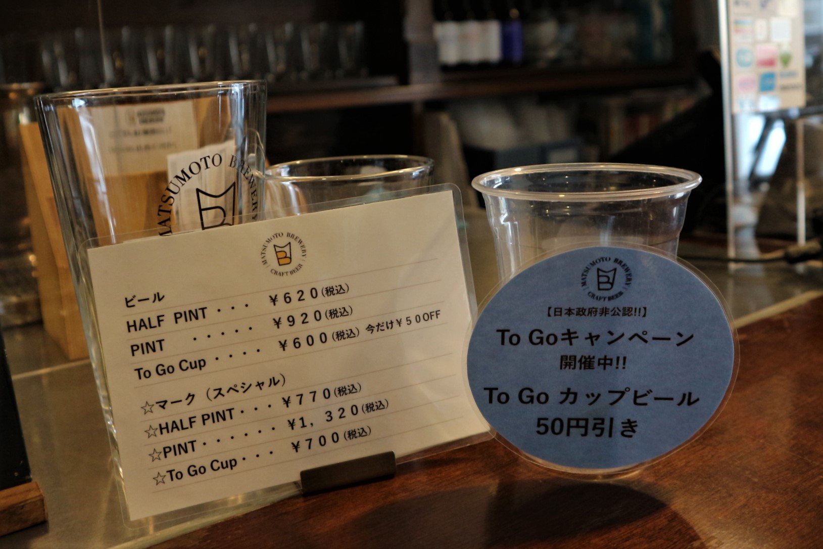 To Goキャンペーンでテイクアウト用のカップビールが50円引きです!