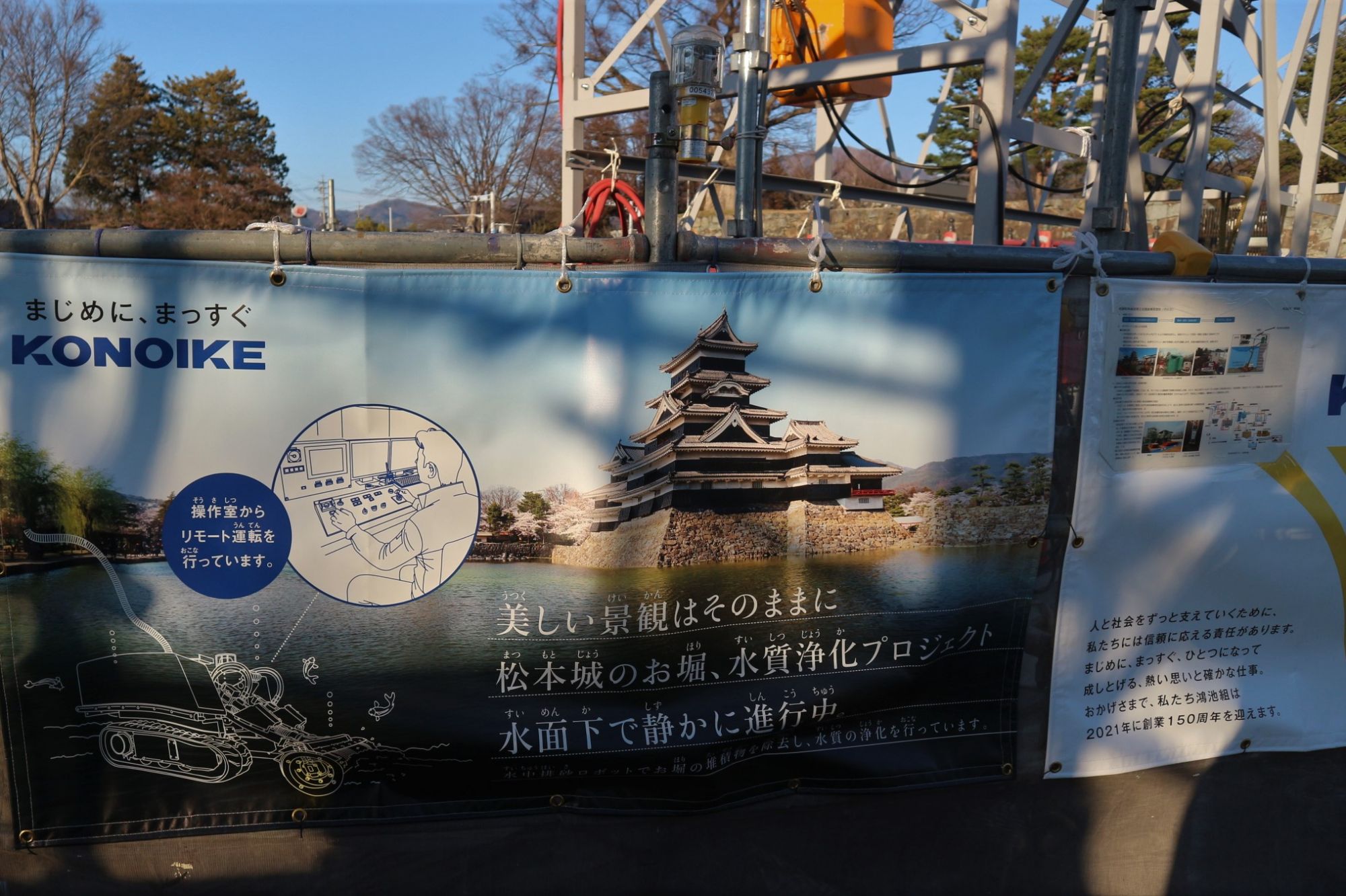 松本城堀の浚渫看板