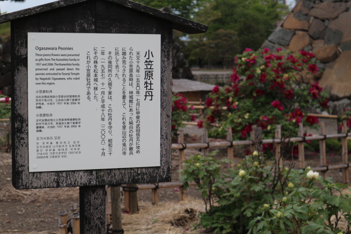 その後同所の久根下家は、この牡丹を守り、昭和三二年(一九五七年)十一月と平成十八年(二〇〇六)一〇月にその株を松本城に移した。