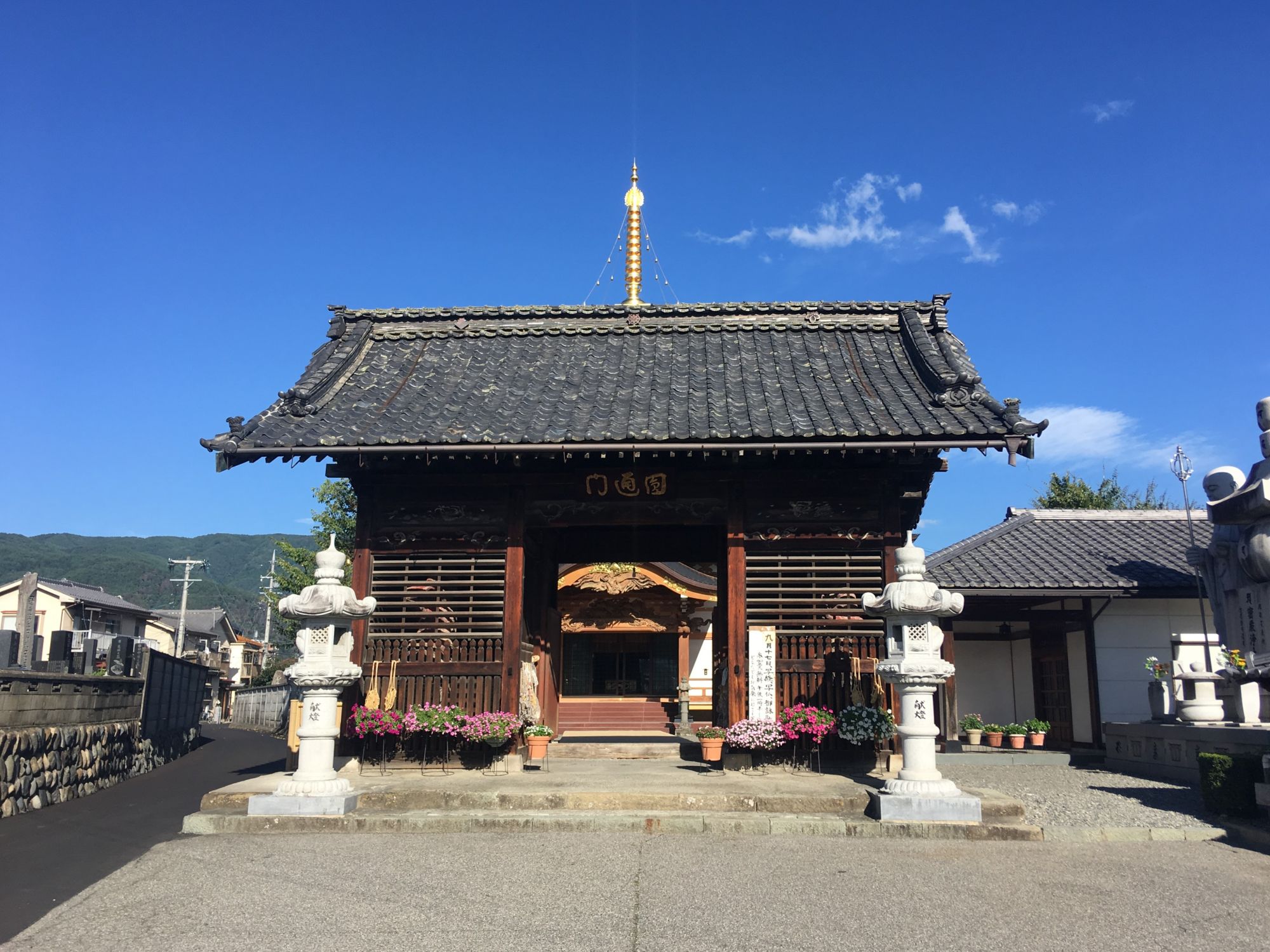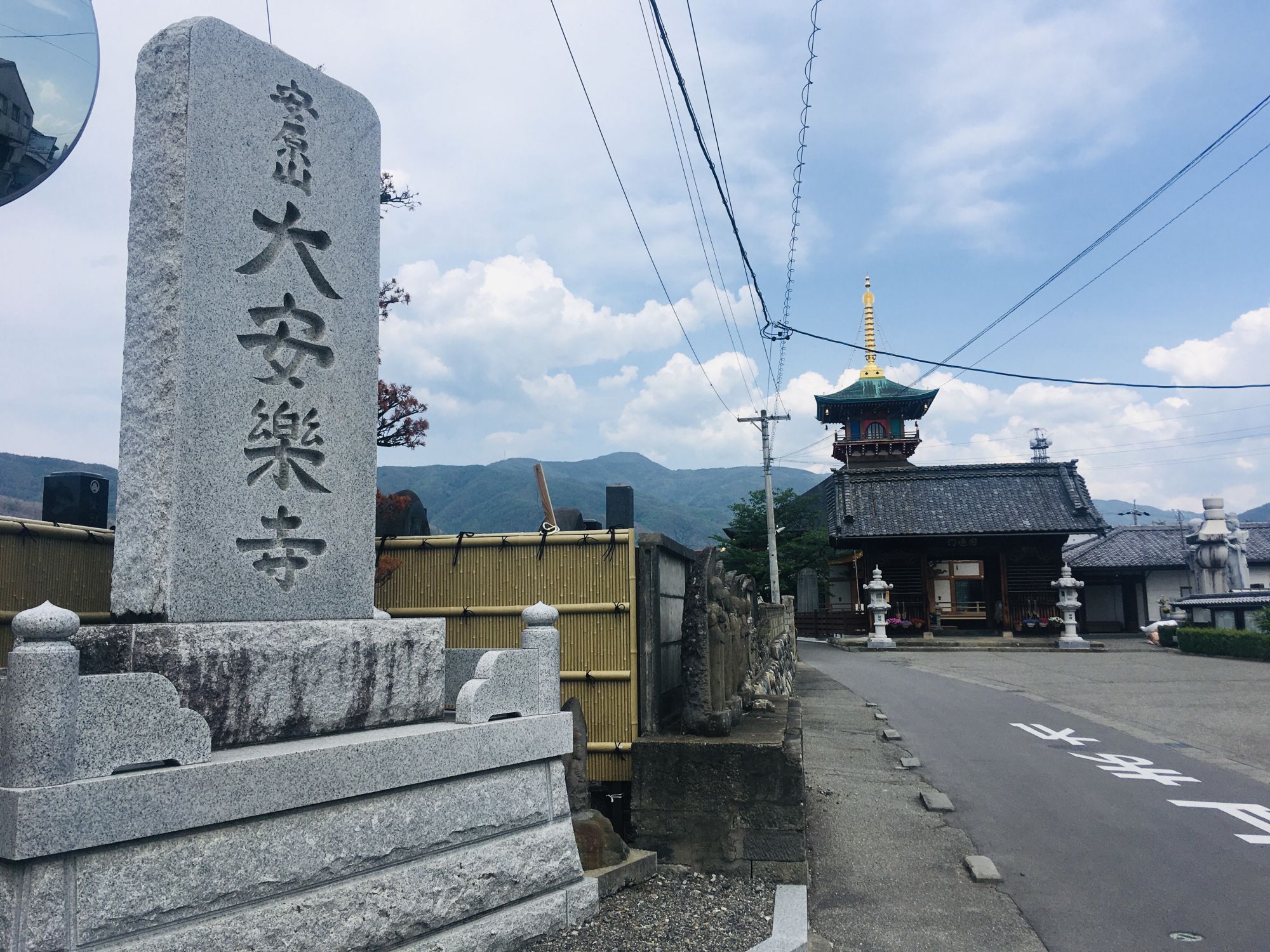 Offiziell heißt der Tempel “Taiangakuji” (大安楽寺), ich finde aber den Spitznamen „Bunter Tempel“ oder „Strohsandalen Tempel“ viel anschaulicher.