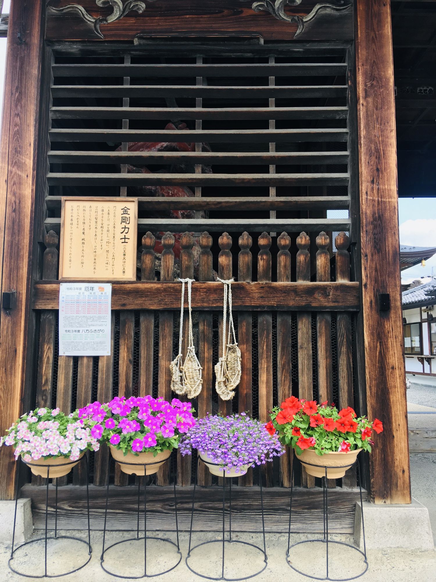 Gleich am Eingang vor den Onio-Wächtern hängen zahlreiche Strohsandalen (waraji).