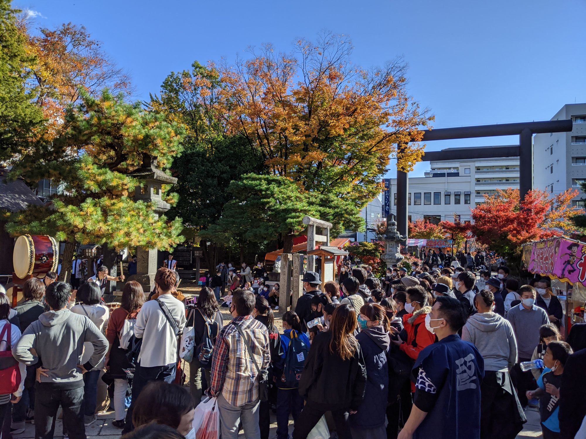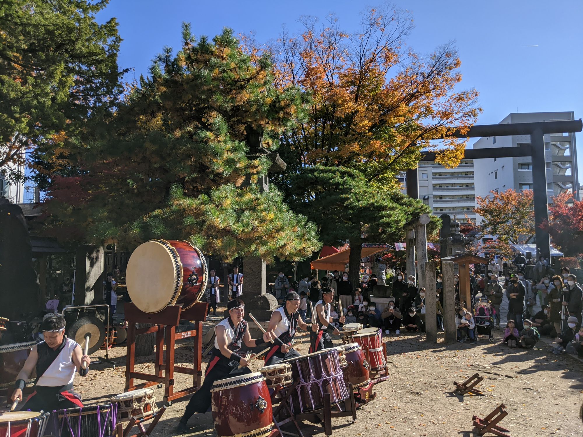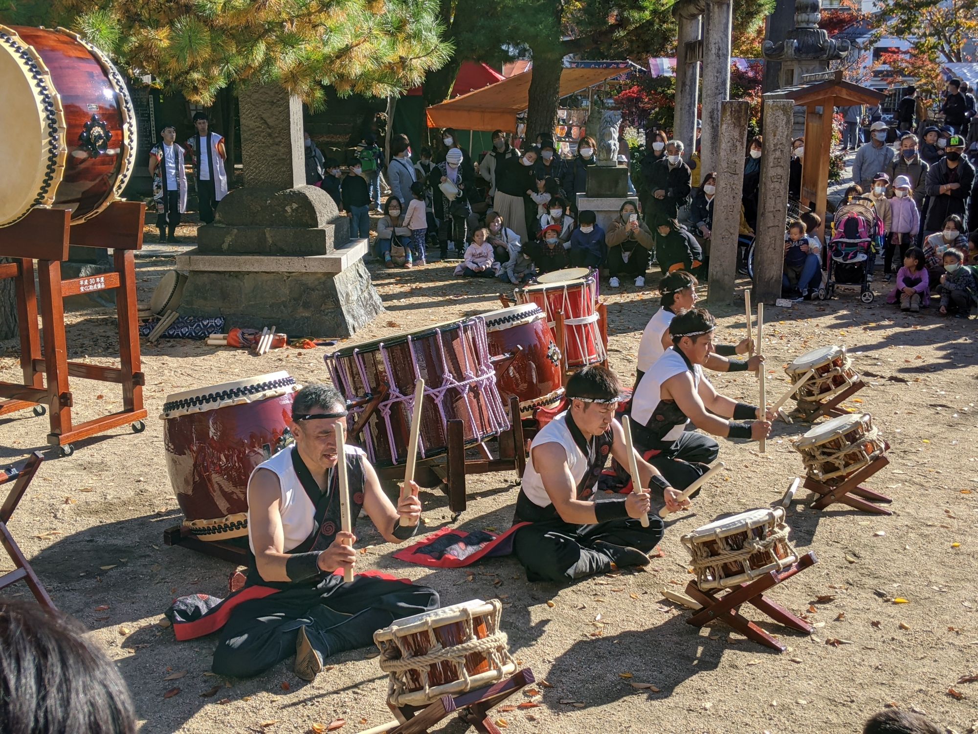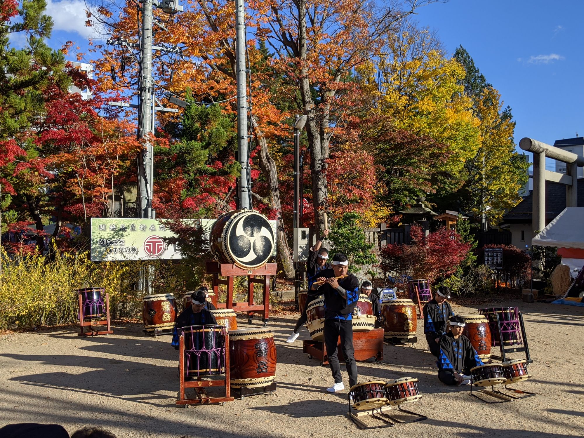 En cette magnifique journée d’automne, j’ai ainsi eu la chance de découvrir le Festival de la Culture, organisé chaque année le 03 Novembre, et au cours duquel de nombreuses représentations de Taiko étaient organisées.