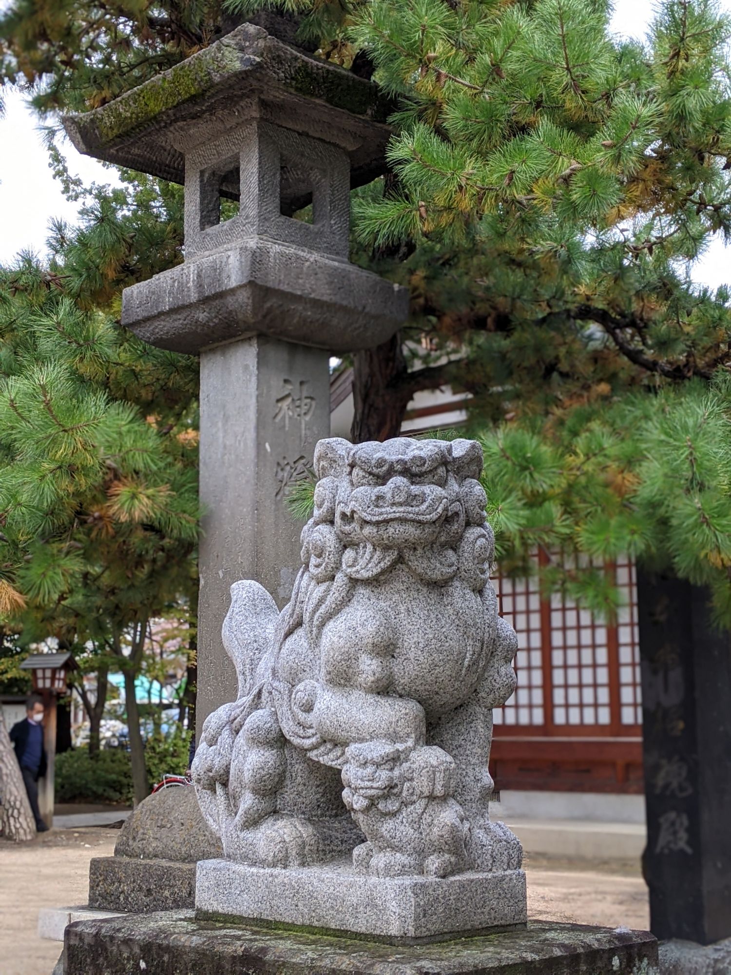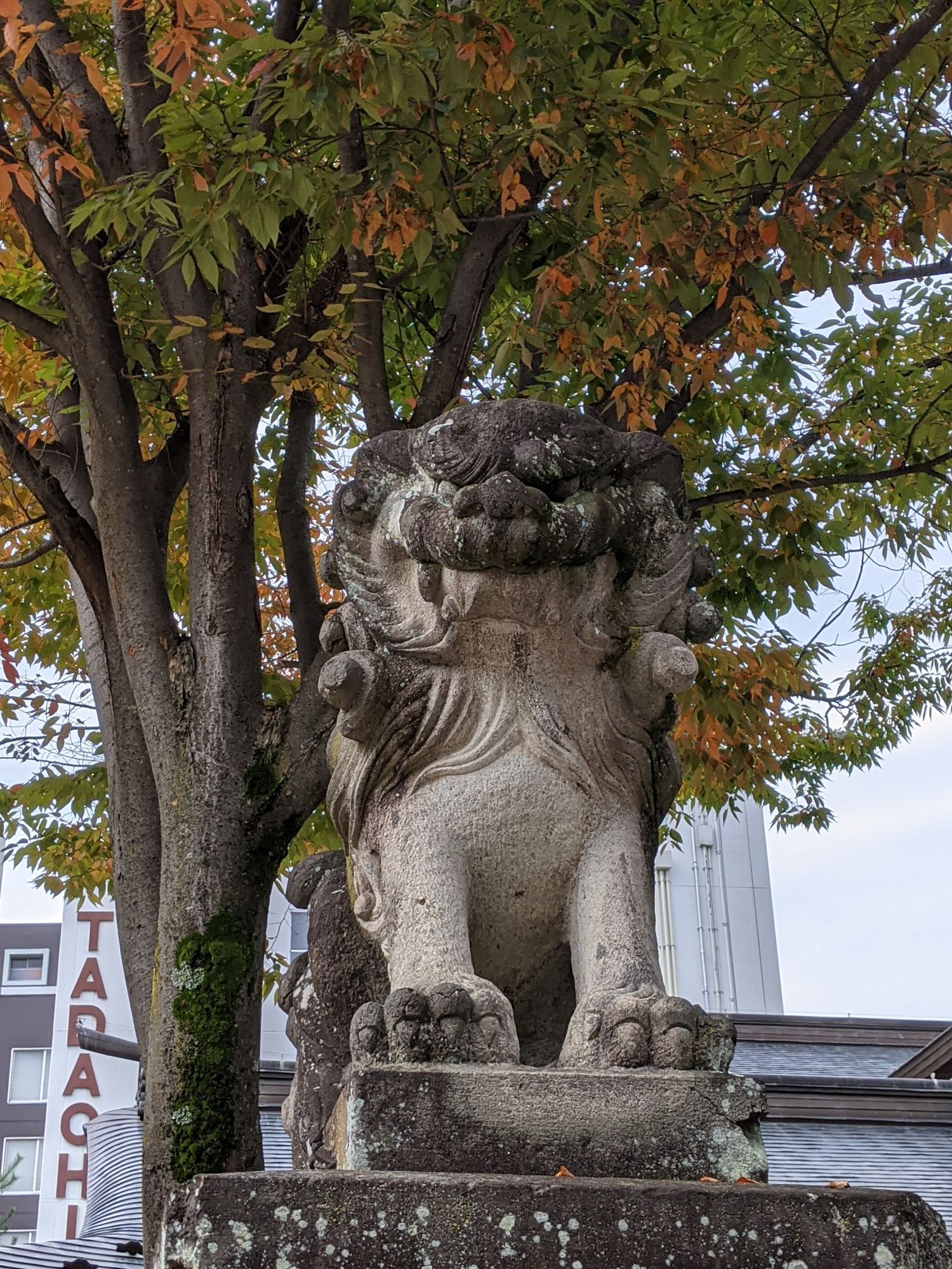 En effet, on retrouve sur ces statues une longue chevelure entourant le visage et retombant jusqu’au socle (la base de la statue). Une caractéristique propre aux statues de Matsumoto et de ses environs. C’est la différence principale entre les statues que l’on trouve ici et les autres statues du pays. On les retrouve généralement par pair à la fin de l’allée menant au temple principal et sont appelés les « Komainu ».