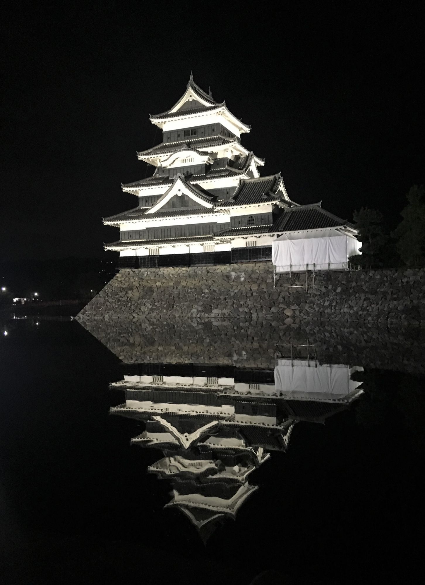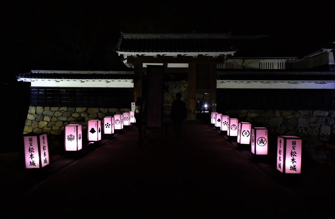 Auch im Dunkeln ist die Matsumoto Burg einen Besuch wert. Von Sonnenuntergang bis 22 Uhr (wochentags bis 21 Uhr) wird der Burgturm das ganze Jahr über beleuchtet und legt einen ganz eigenen Zauber auf die an sich schon imposante Burg.