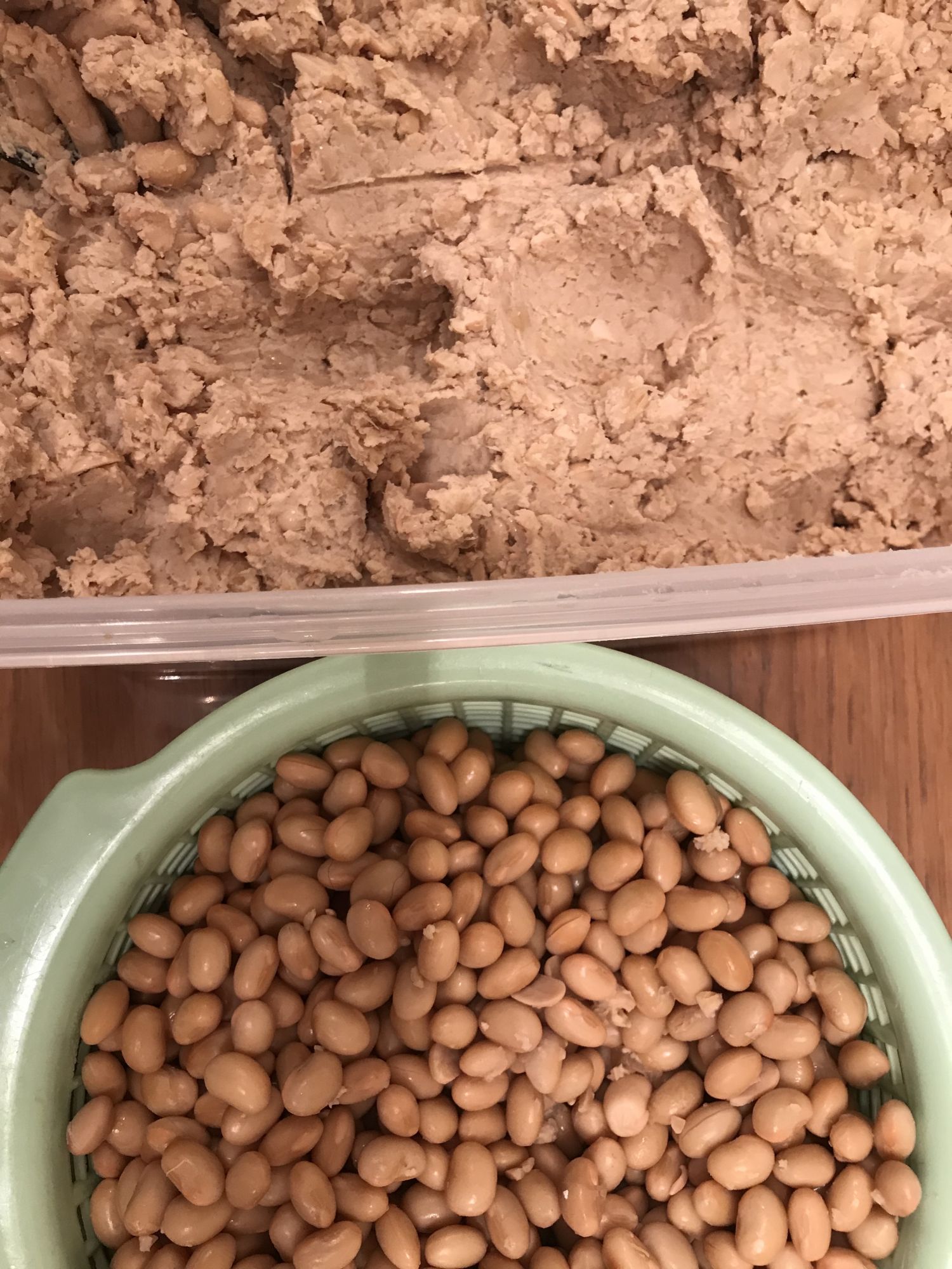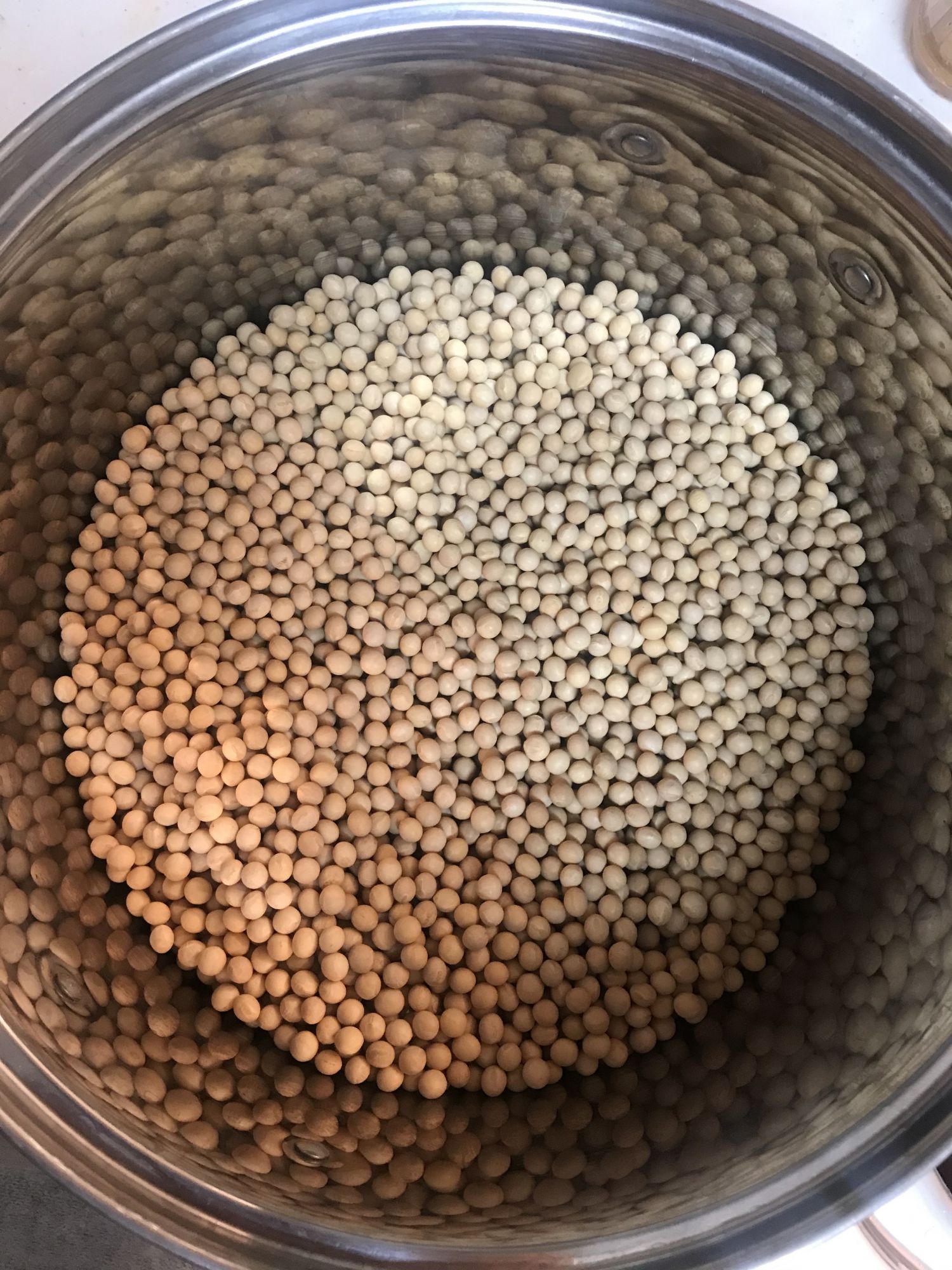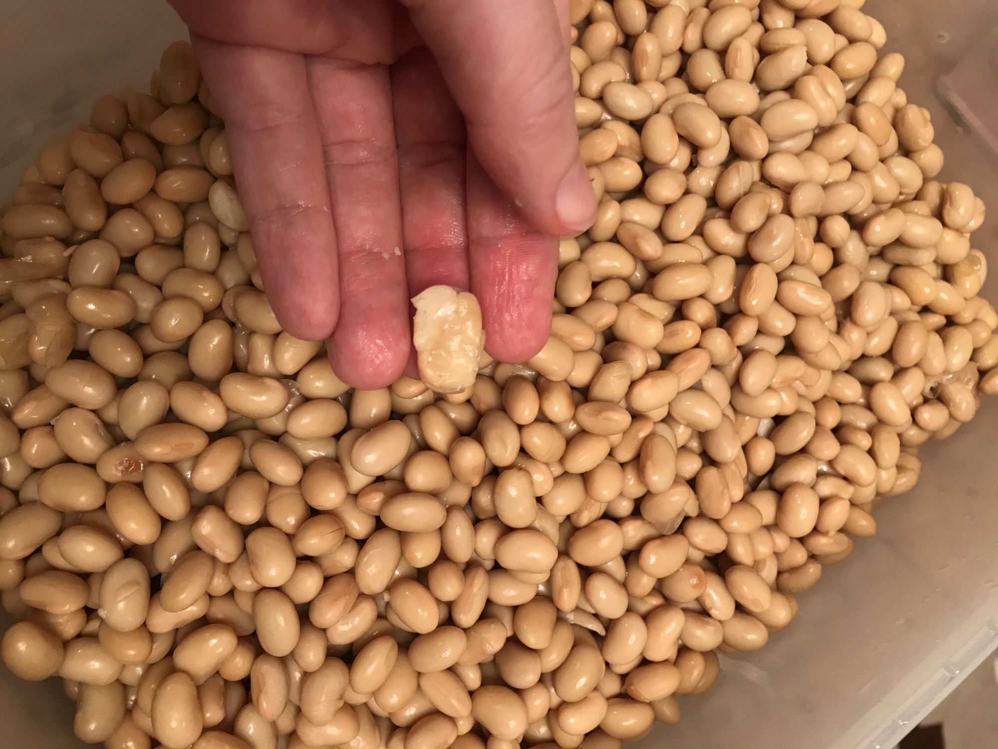 Для начала соевые бобы замачивают в большом количестве воды (удобнее оставить фасоль на ночь), после чего варят до мягкого состояния. Если отваренная фасоль легко давится в пюре – значит, она готова. Слив излишки воды отваренные и остуженные до 40-45 градусов бобы измельчают до состояния однородной кашицы.