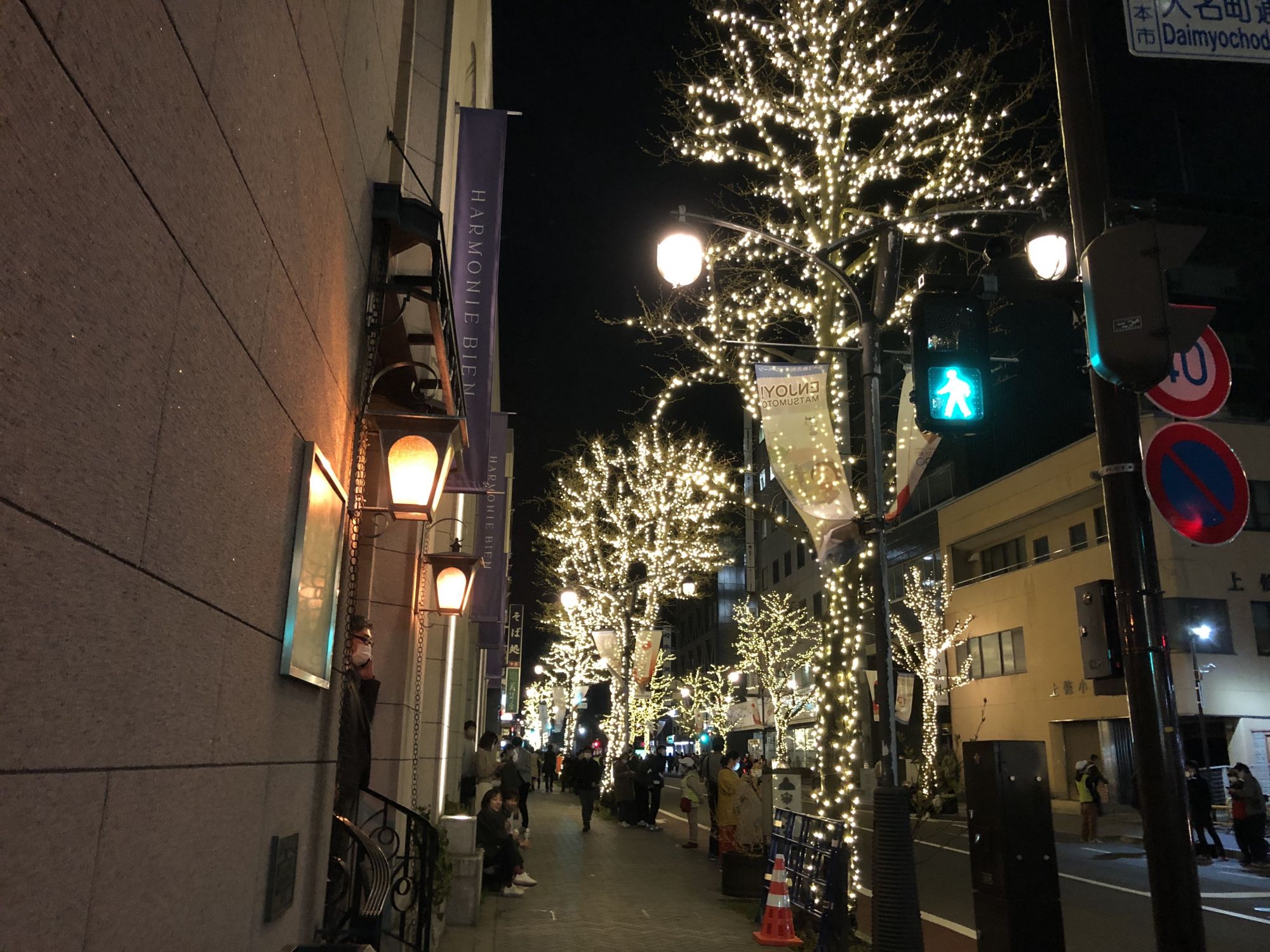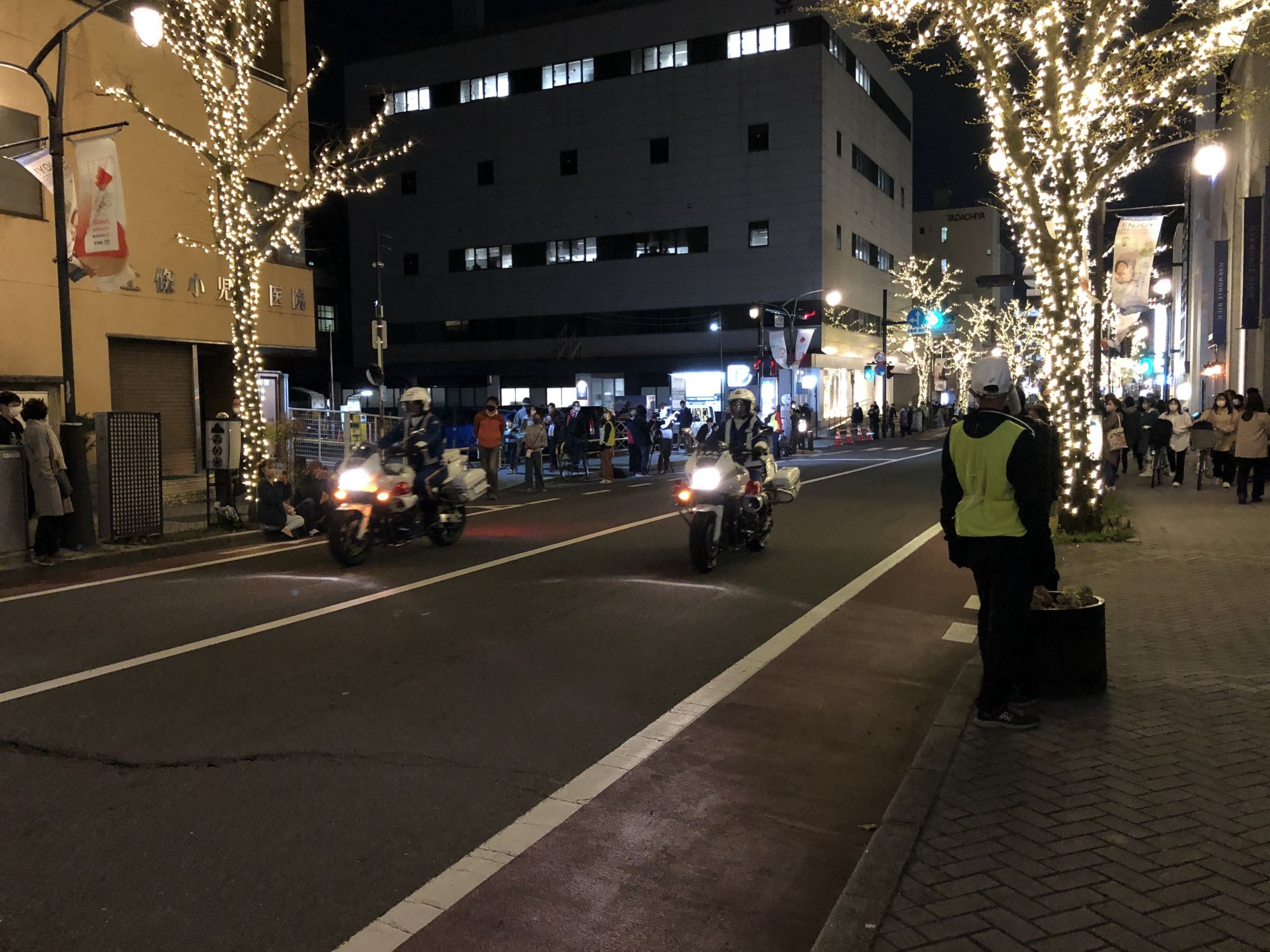 วันที่ 2 เมษายน ที่มัตสึโมโต้จัดงานวิ่งคบเพลิงโอลิมปิก ผู้คนส่วนใหญ่เลยถือโอกาสออกมาชมดอกซากุระยามค่ำคืน พร้อมทั้งรอชมการวิ่งคบเพลิงโอลิมปิกด้วย