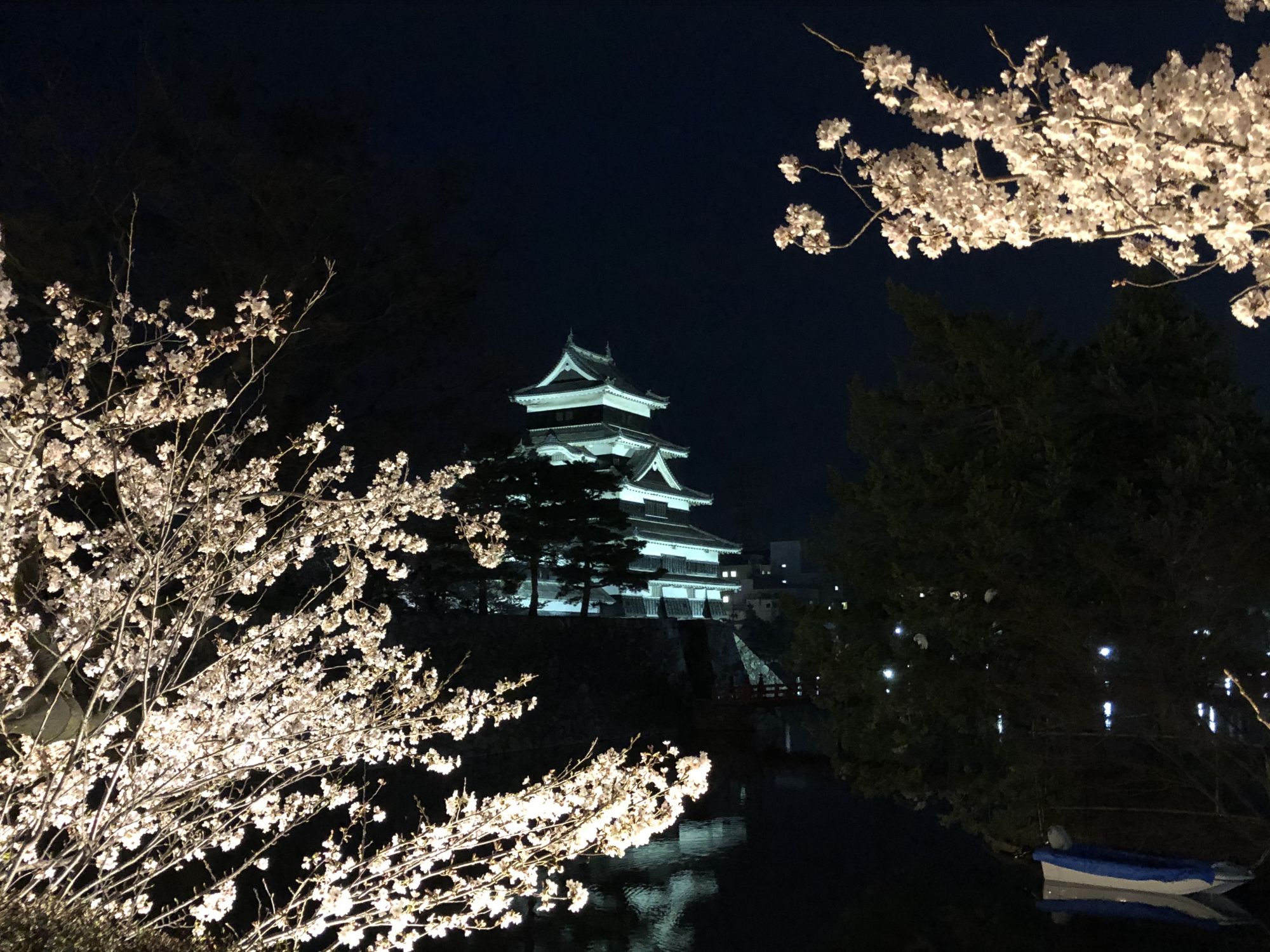 ช่วงเดือนเมษายน ไปทางไหนก็เห็นแต่ดอกซากุระเต็มไปหมด ปีนี้ดอกซากุระที่มัตสึโมโต้บานตั้งแต่ช่วงปลายเดือนมีนาคมแล้ว เมื่อดอกซากุระบาน ที่ปราสาทมัตสึโมโต้จะมีการประดับแสงไฟที่ใต้ต้นซากุระและที่ตัวปราสาท และมีการจัดงานเทศกาลชมดอกซากุระด้วย ปกติภายในงานจะมีการแสดงดนตรี มีร้านขายอาหาร ขายขนมดังโกะ แต่ปีนี้เพื่อป้องกันการแพร่ระบาดของไวรัสโคโรน่าในงานจึงไม่มีการจำหน่ายอาหาร และงดจัดการแสดงเครื่องดนตรี งานชมดอกซากุระตอนกลางคืน (โยซากุระไค) จะเริ่มจัด 3 วันให้หลังจากที่มีการประกาศว่าดอกซากุระที่ปราสาทมัตสึโมโต้เริ่มบาน โดยงานจะจัดเป็นระยะเวลา 8 วัน แต่เนื่องจากวันที่ 2 เมษายนที่ผ่านมา เค้ามีการวิ่งคบเพลิงโอลิมปิกผ่านปราสาทมัตสึโมโต้ งานก็เลยเลื่อนออกไปเป็นวันที่ 3 ถึง วันที่ 10 เมษายน 2021 ที่บริเวณสวนฮงมารุหน้าตัวปราสาท