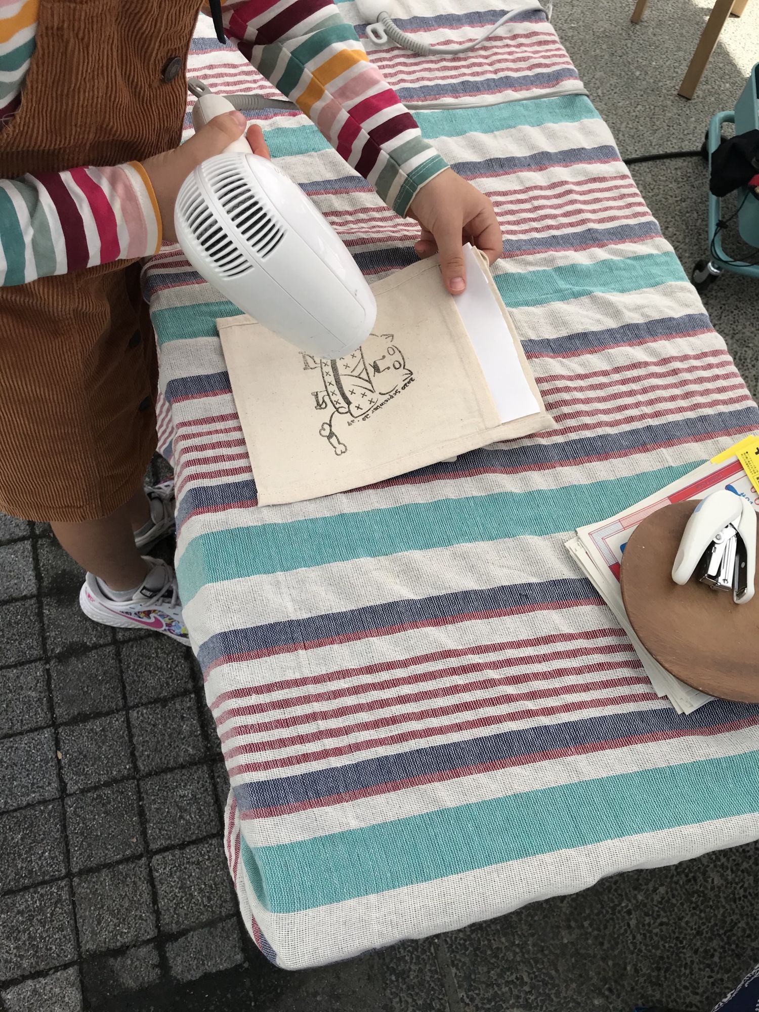 На площадке перед КурассикКан желающие могли приобрести простые сумки из хлопка и нанести на них понравившийся рисунок по старому методу, который традиционно использовался для нанесения узоров на шелк. В роли дизайнеров в основном выступали дети, которые с удовольствием размазывали краску на специальные трафареты, потом сушили рисунок с помощью обычного фена. После чего можно было дополнить свое произведение всевозможными печатями разных цветов.