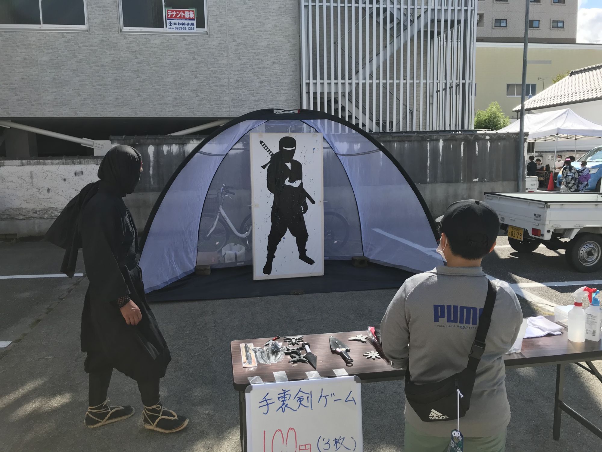 На одной из площадок улицы за символическую плату можно было научится кидать самый настоящий сирикен! Один из учеников школы нинзя охотно рассказывал об оружии настоящего нинзя и о различии сирикенов.