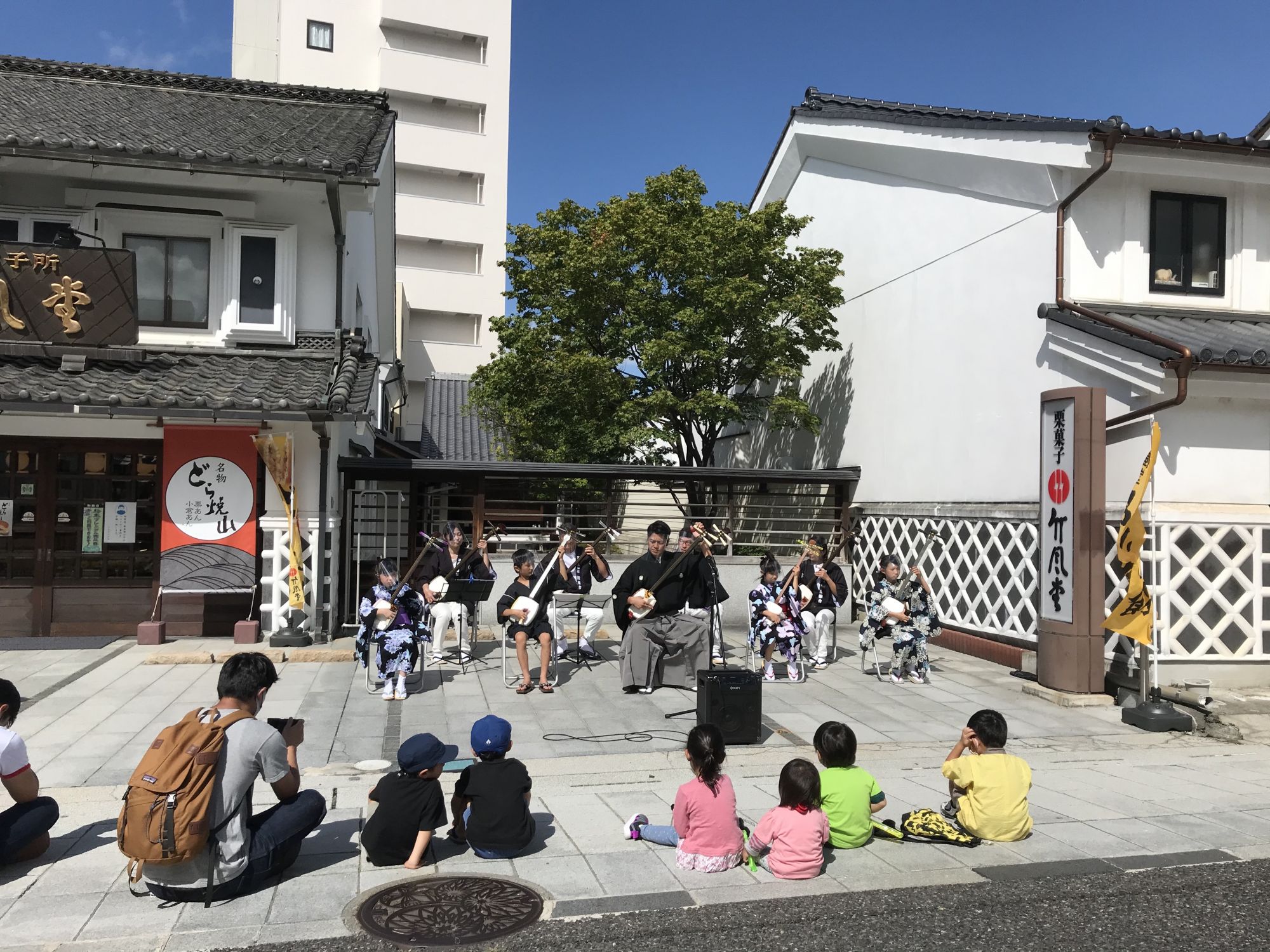 27сентября в обед на улице Накамати выступал музыкальный ансамбль традиционной японской музыки. Среди музыкантов было несколько детей. Все они весьма умело исполнили пару известных мелодий на струнном музыкальном инструменте самисен.