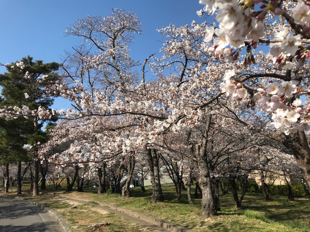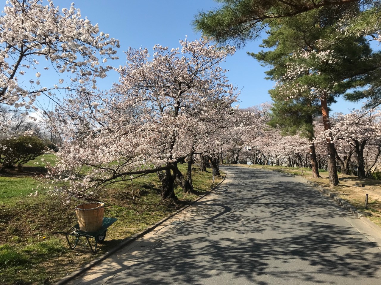 Один из самых немноголюдных парков в Мацумото – парк Джояма, во время пандемии нового короновируса практически пустует. Лишь живущие по соседству семьи выходят прогуляться под цветущей сакурой.