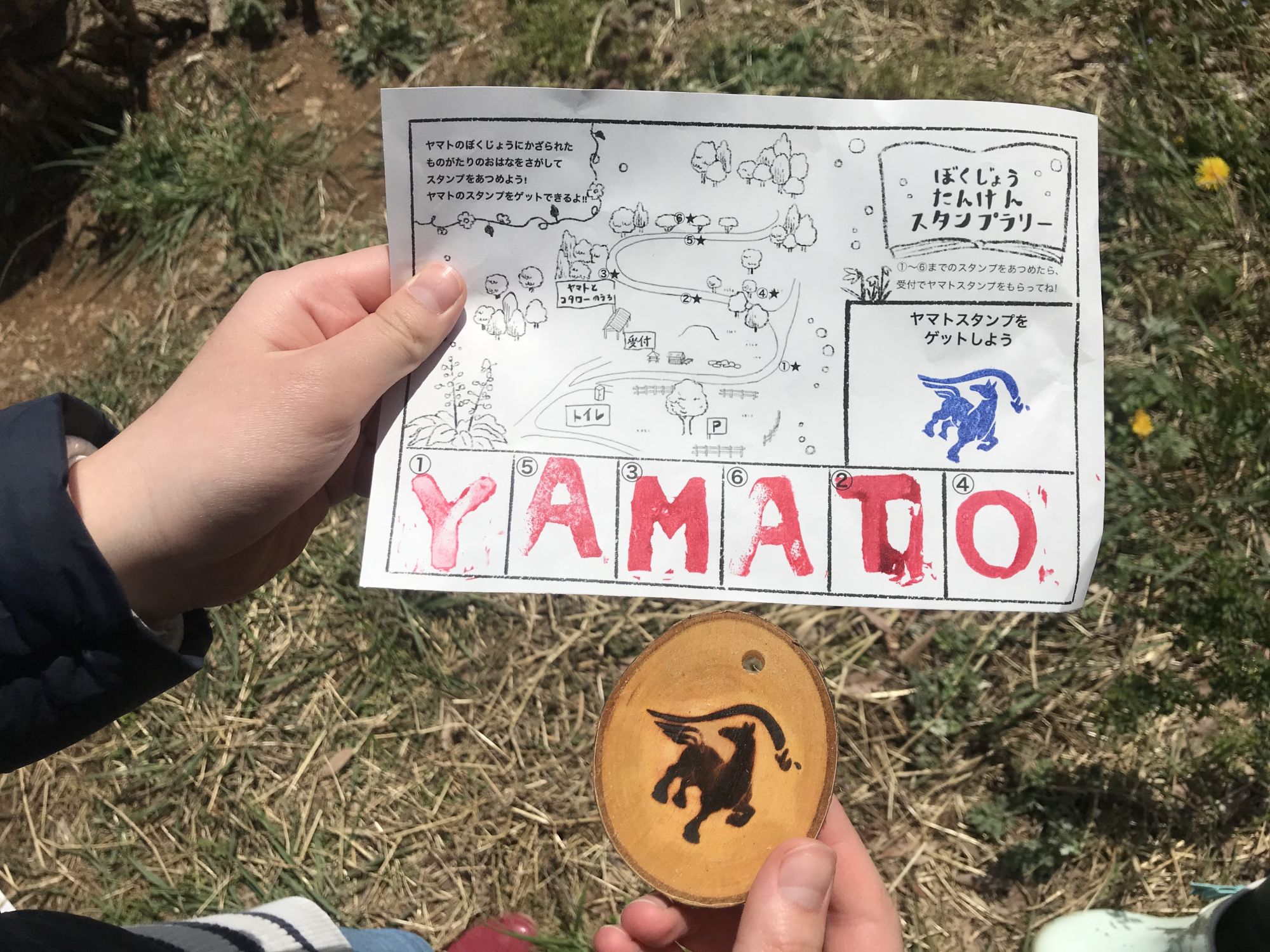 Для детей организаторы придумали увлекательную игру, где каждому участнику выдавалась карточка с зашифрованным словом, отгадав которое можно было получить небольшой деревянный сувенир от Ямато. Для отгадки нужно было пройти по всей территории ранчо и найти 6 стендов, на каждом из которых была печать с буквой и ее номером. В итоге, собрав все буквы получилось слово “Yamato”.