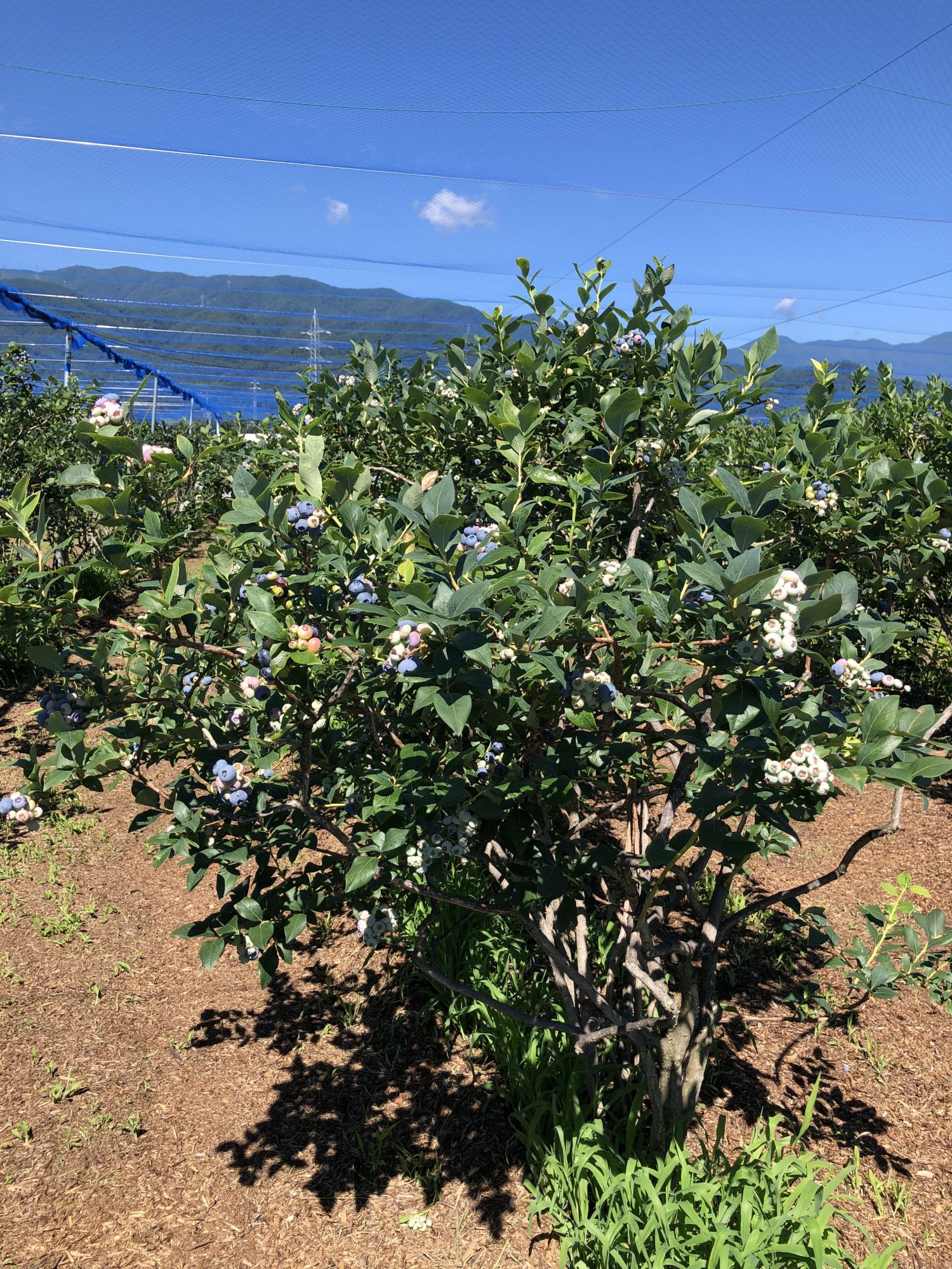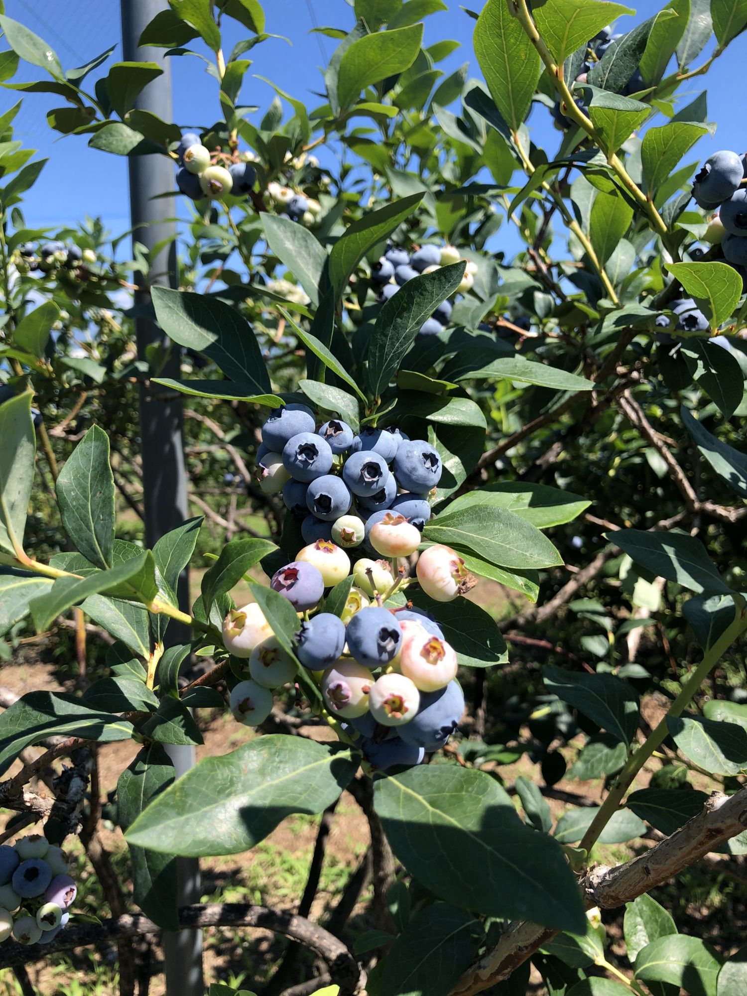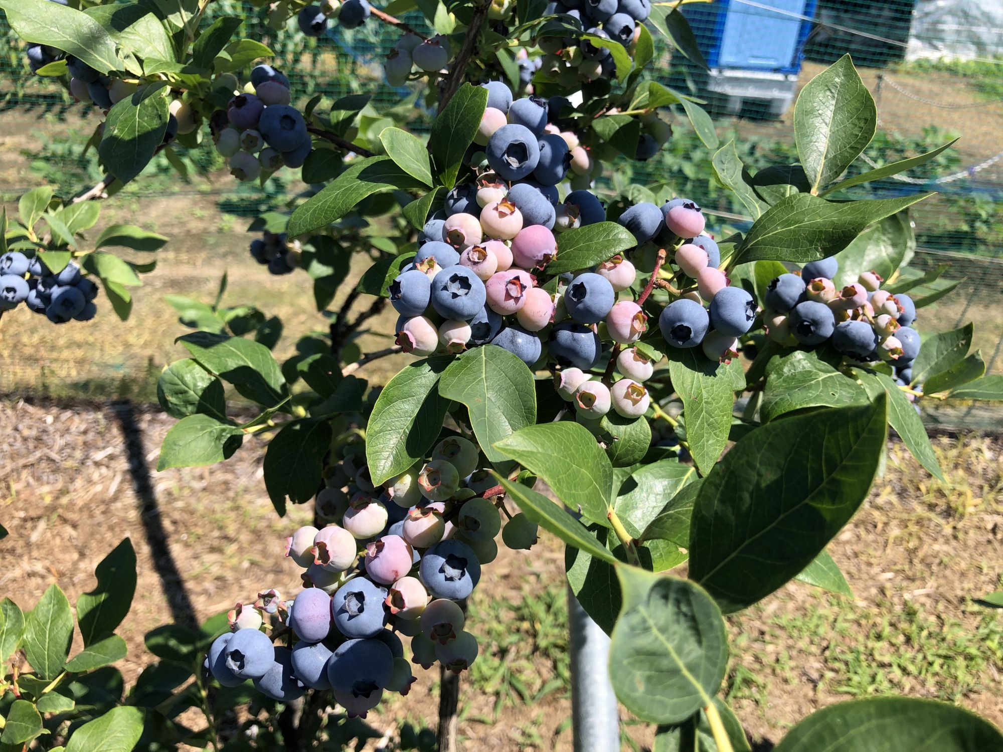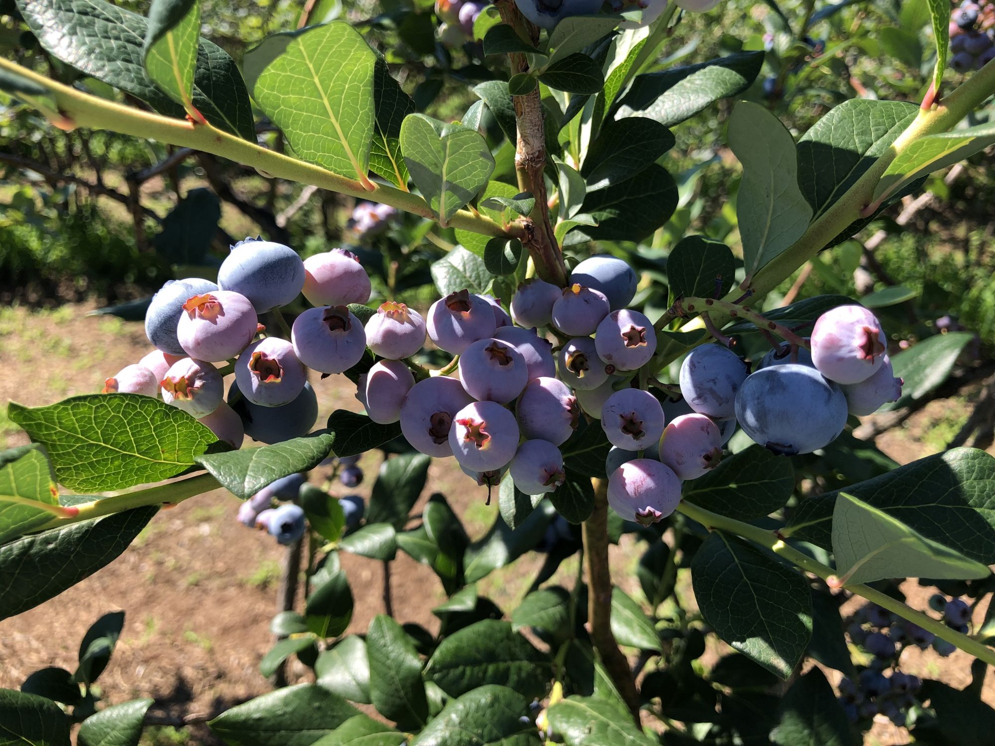 บลูเบอรี่ของที่นี่สามารถเก็บได้ตั้งแต่เดือนต้นกรกฎาคม ไปจนถึงต้นเดือนสิงหาคม ในสวนบลูเบอรี่เค้าจะปลูกเป็นแถว มีหลายพันธุ์รวมกัน มีทั้งแบบเนื้อนิ่มรสหวานเปลือกสีม่วงเข้ม กับพันธุ์ที่หวานอมเปรี้ยวเปลือกสีม่วงอ่อน เวลาจะเก็บก็ชิมก่อนว่าชอบรสชาติแบบไหน