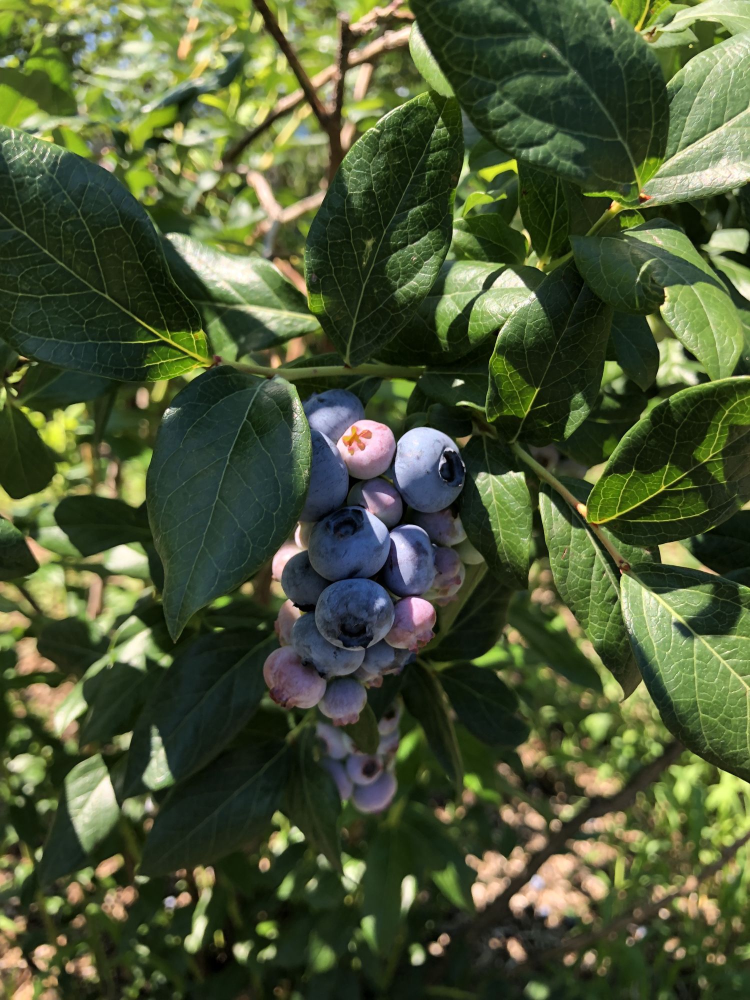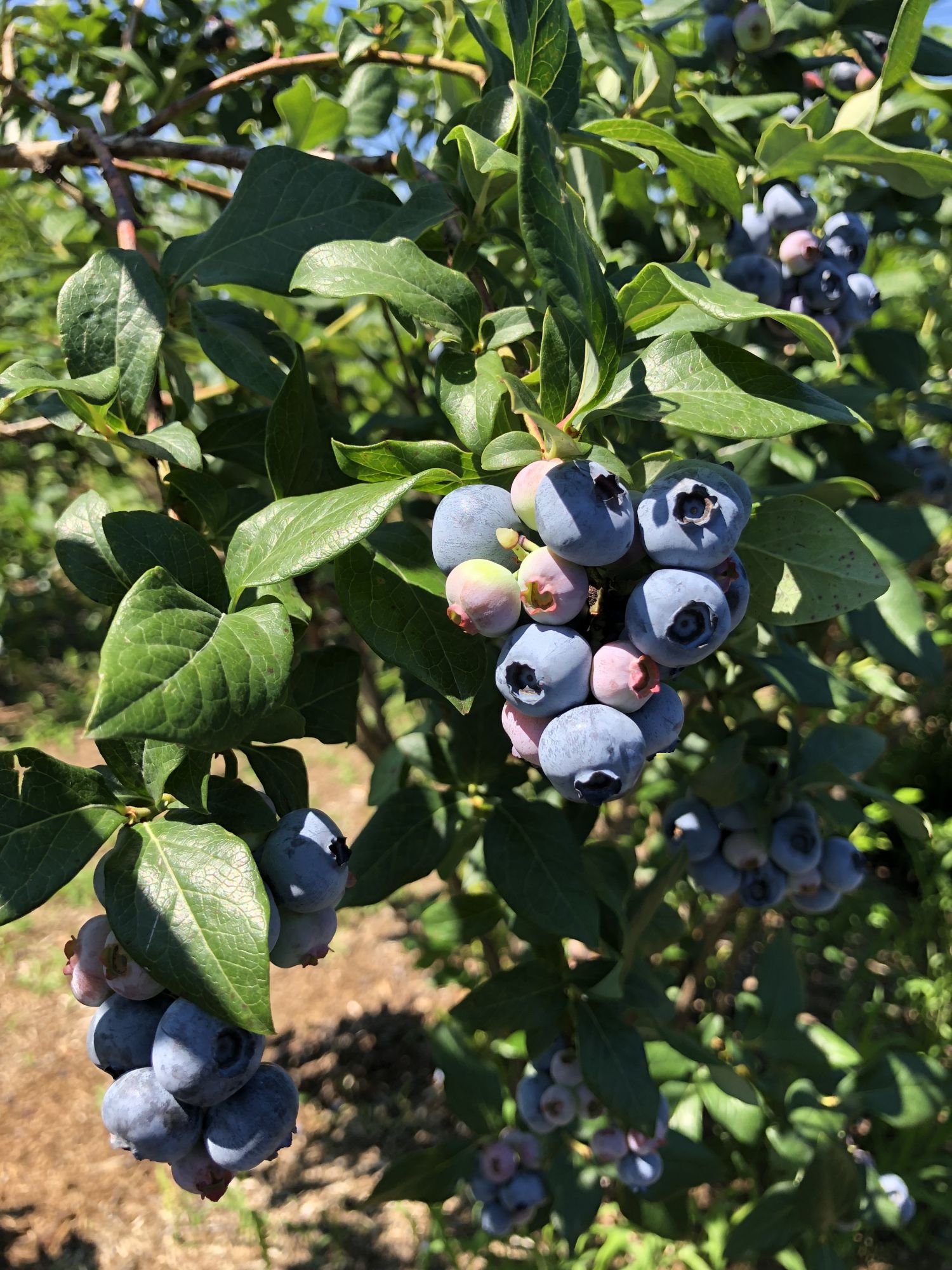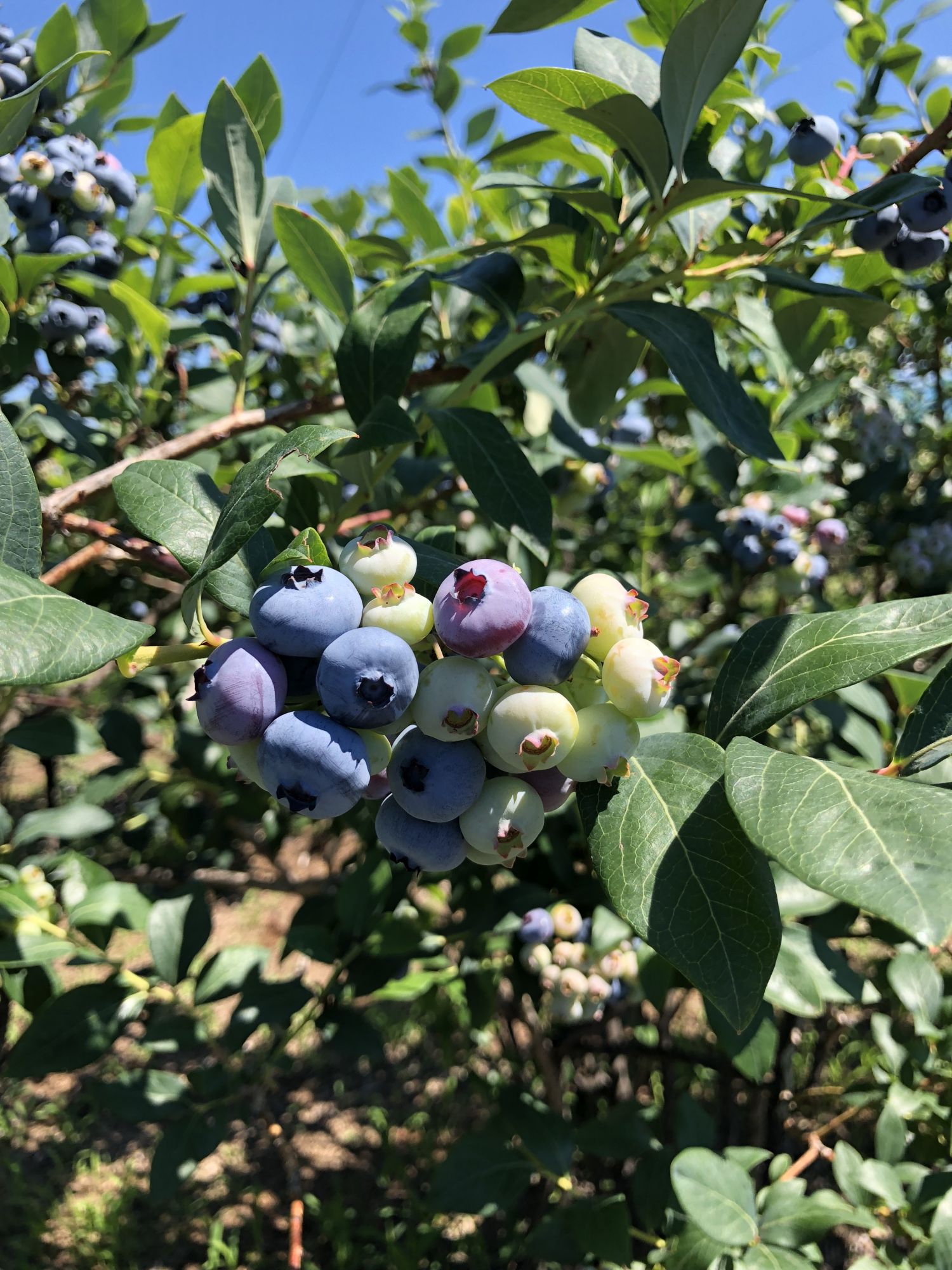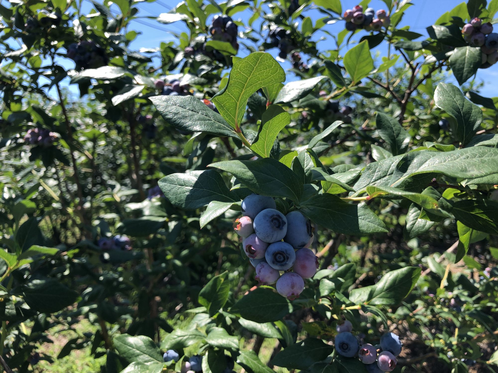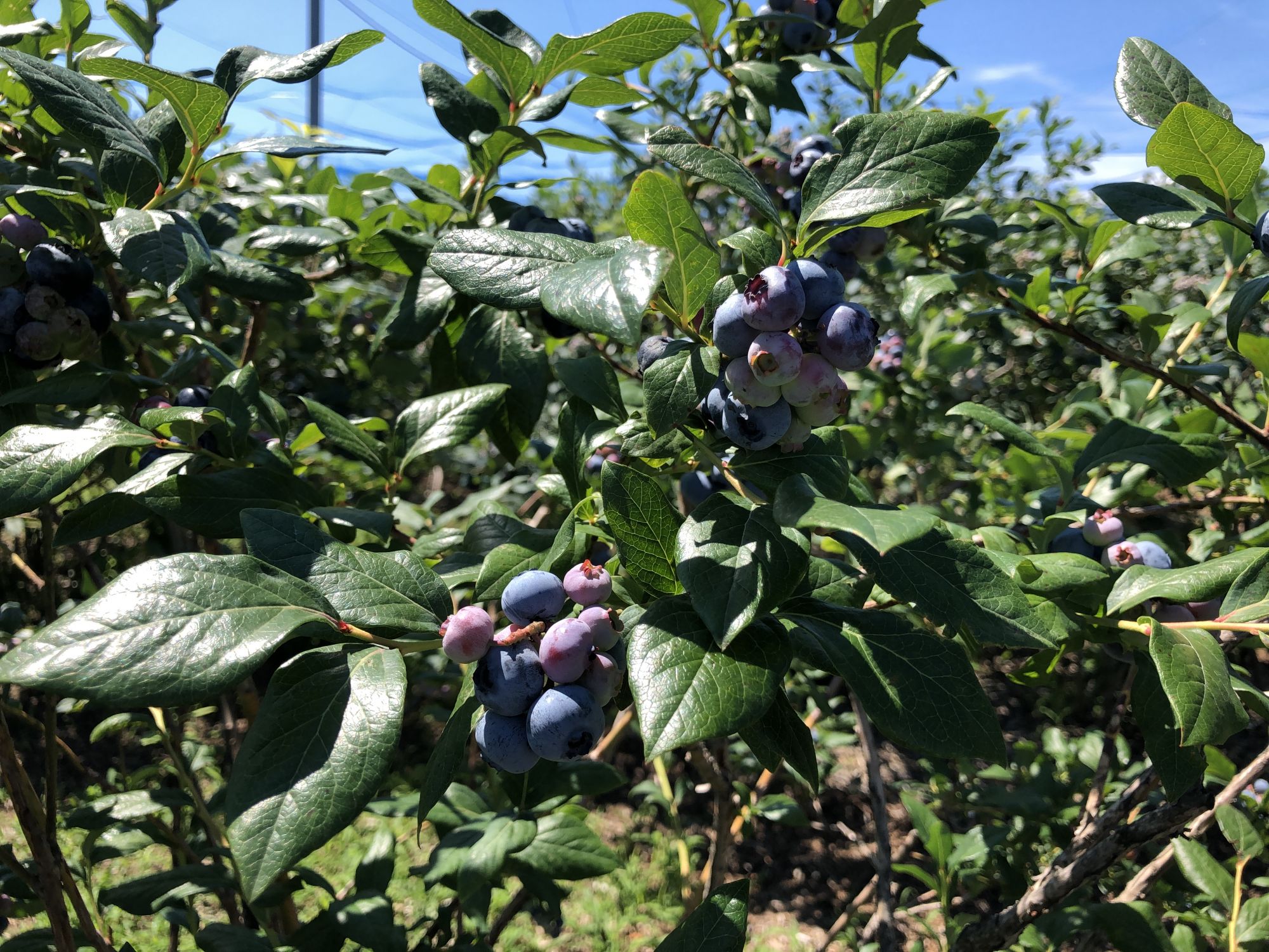 บลูเบอรี่ของที่นี่สามารถเก็บได้ตั้งแต่เดือนต้นกรกฎาคม ไปจนถึงต้นเดือนสิงหาคม ในสวนบลูเบอรี่เค้าจะปลูกเป็นแถว มีหลายพันธุ์รวมกัน มีทั้งแบบเนื้อนิ่มรสหวานเปลือกสีม่วงเข้ม กับพันธุ์ที่หวานอมเปรี้ยวเปลือกสีม่วงอ่อน เวลาจะเก็บก็ชิมก่อนว่าชอบรสชาติแบบไหน